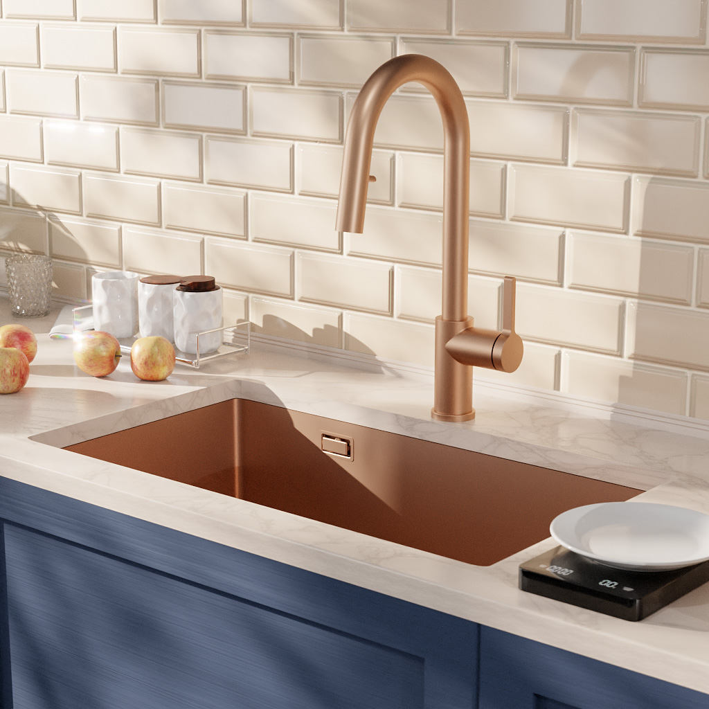 - Ceramia Timeless mitigeur d'évier à levier en acier inoxydable avec douchette extractible, monotrou, cuivre brossé TML (TMLKF285BCP)