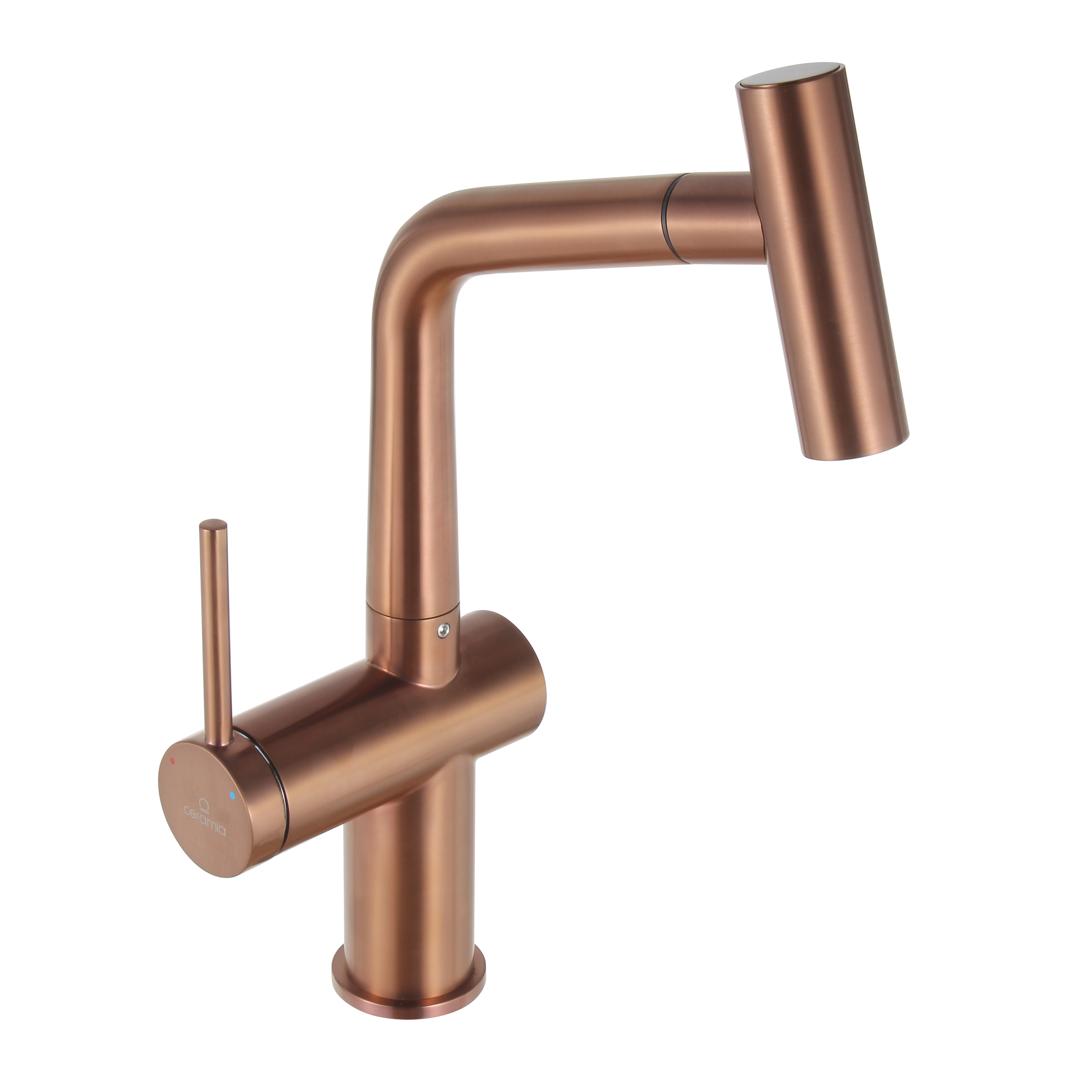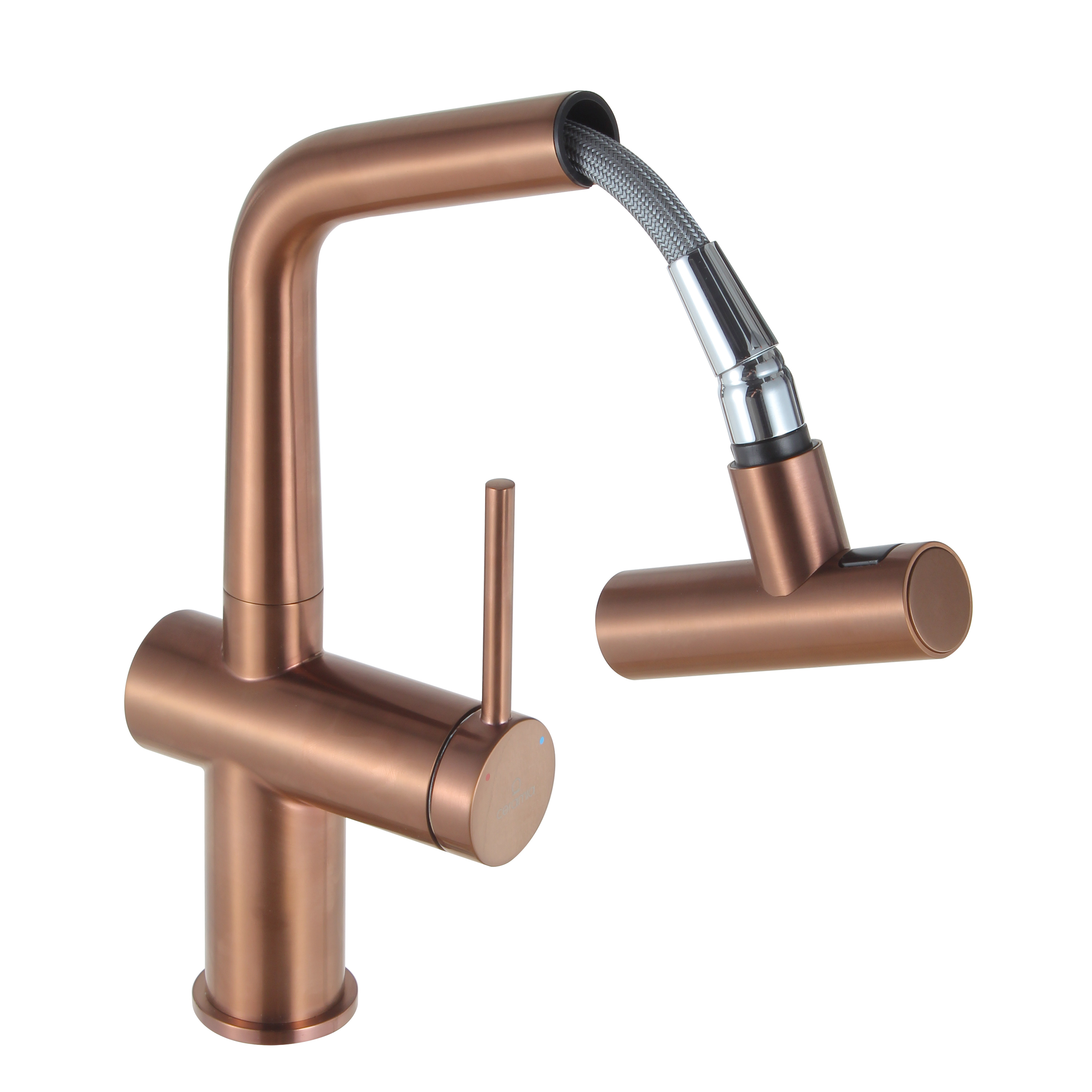 - Ceramia Timeless mitigeur d'évier à levier en acier inoxydable avec douchette extractible, monotrou, or brossé (TMLKF185BG)
