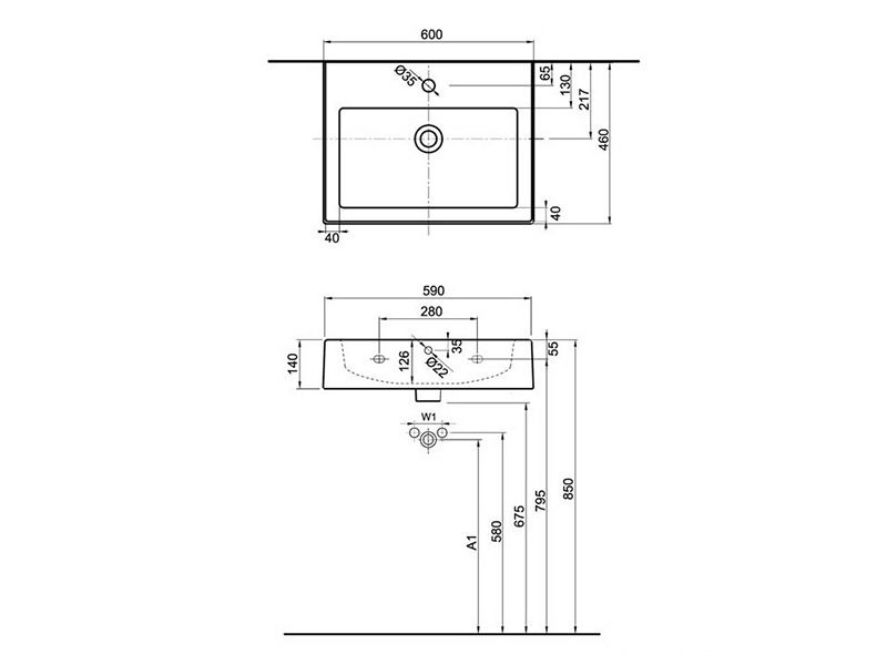 Caractéristiques du Twins Lavabo rectangulaire 60x46cm avec trop-plein (L51160000) :