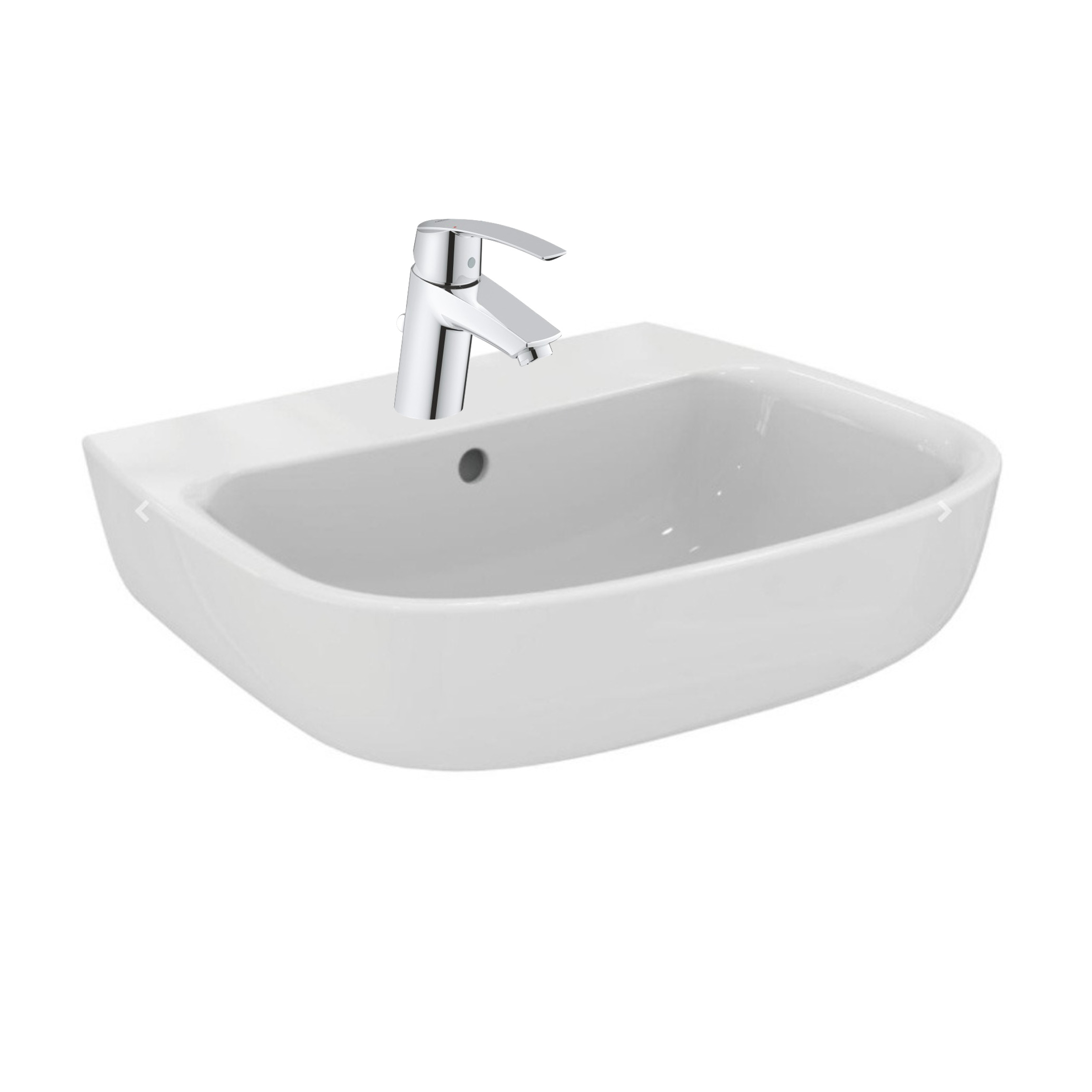 Caractéristiques de l'Ensemble Lavabo suspendu monotrou en porcelaine vitrifiée Kheops + Mitigeur monocommande Grohe Start, Chrome (P098401-SET1) :