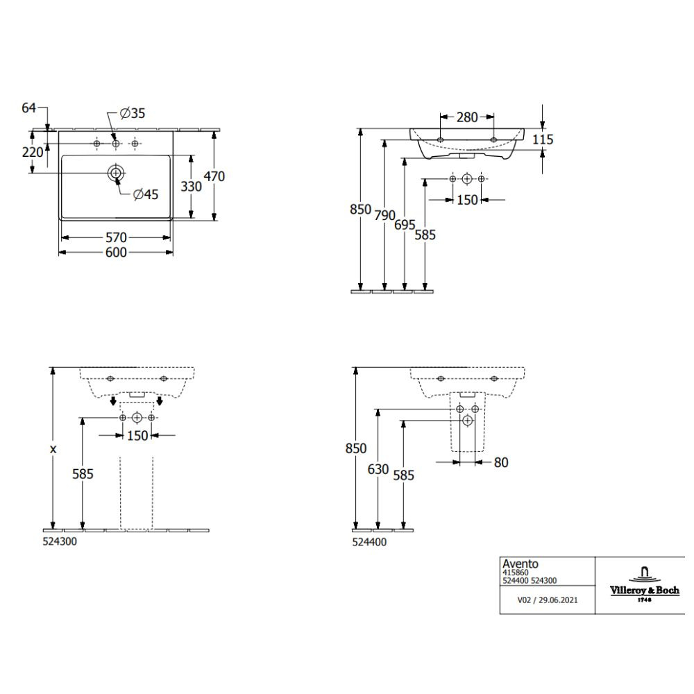 Villeroy & Boch Lavabos Avento, 600 x 470 x 180 mm, Blanc, avec trop-plein (41586001)