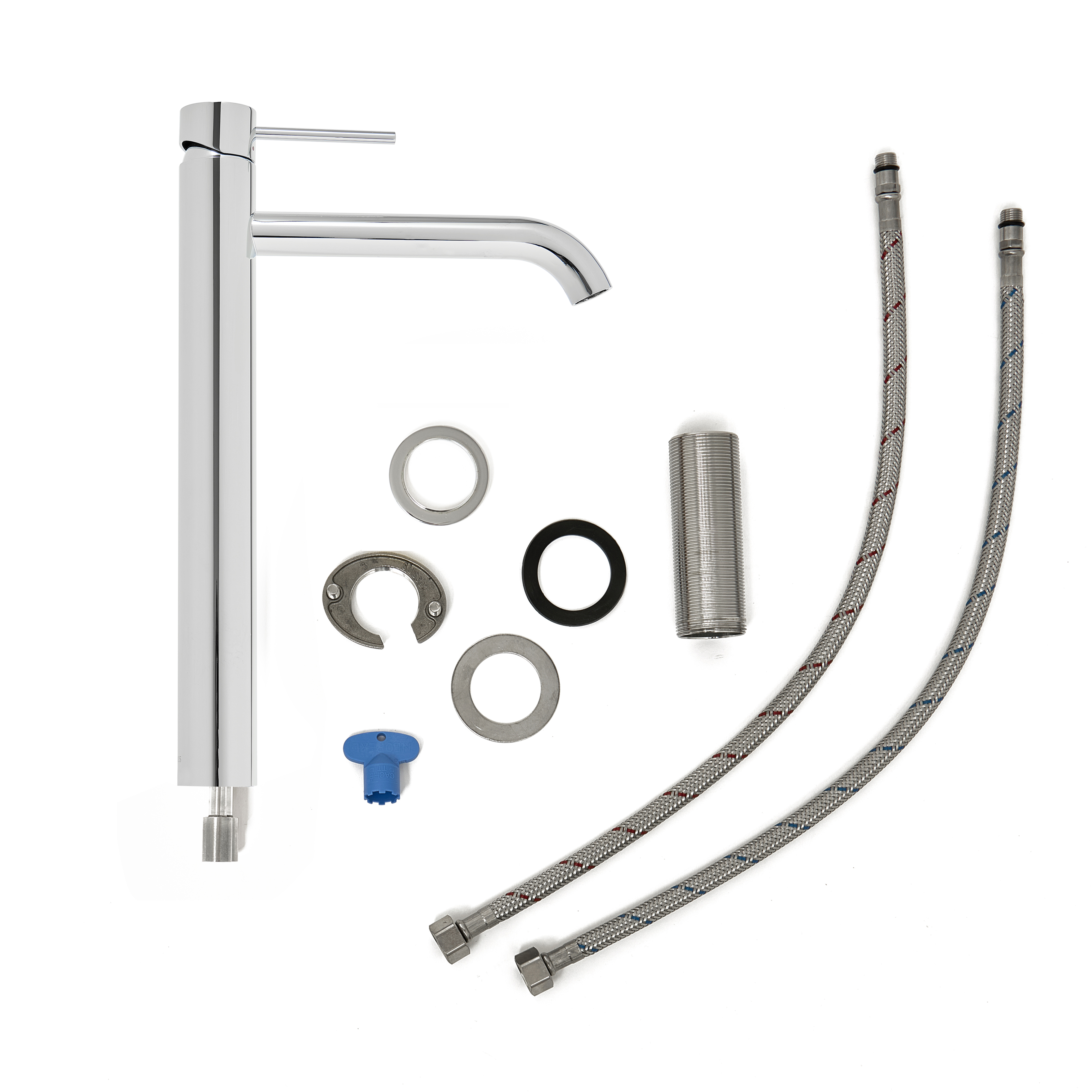 Aurum mitigeur lavabo haut 30,8 cm en acier inoxydable, à levier, sans vidage, chrome brillant (SATBAUR285CR) :