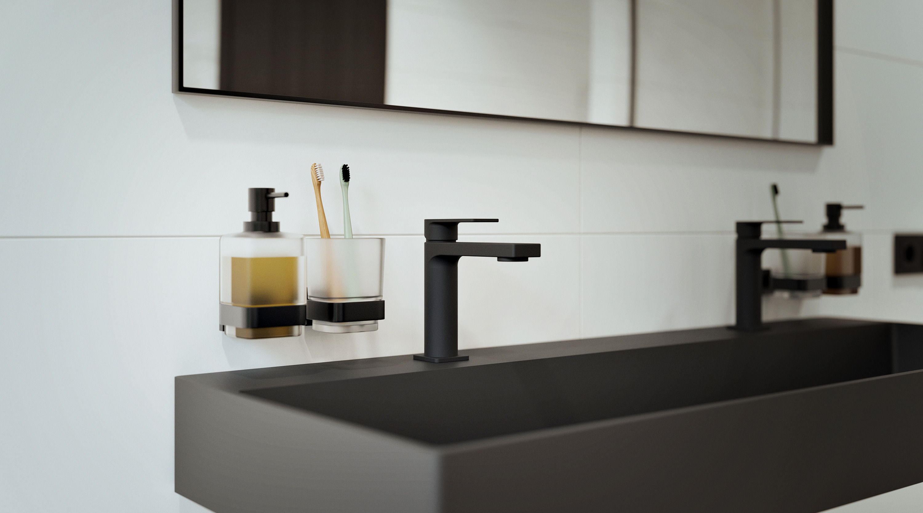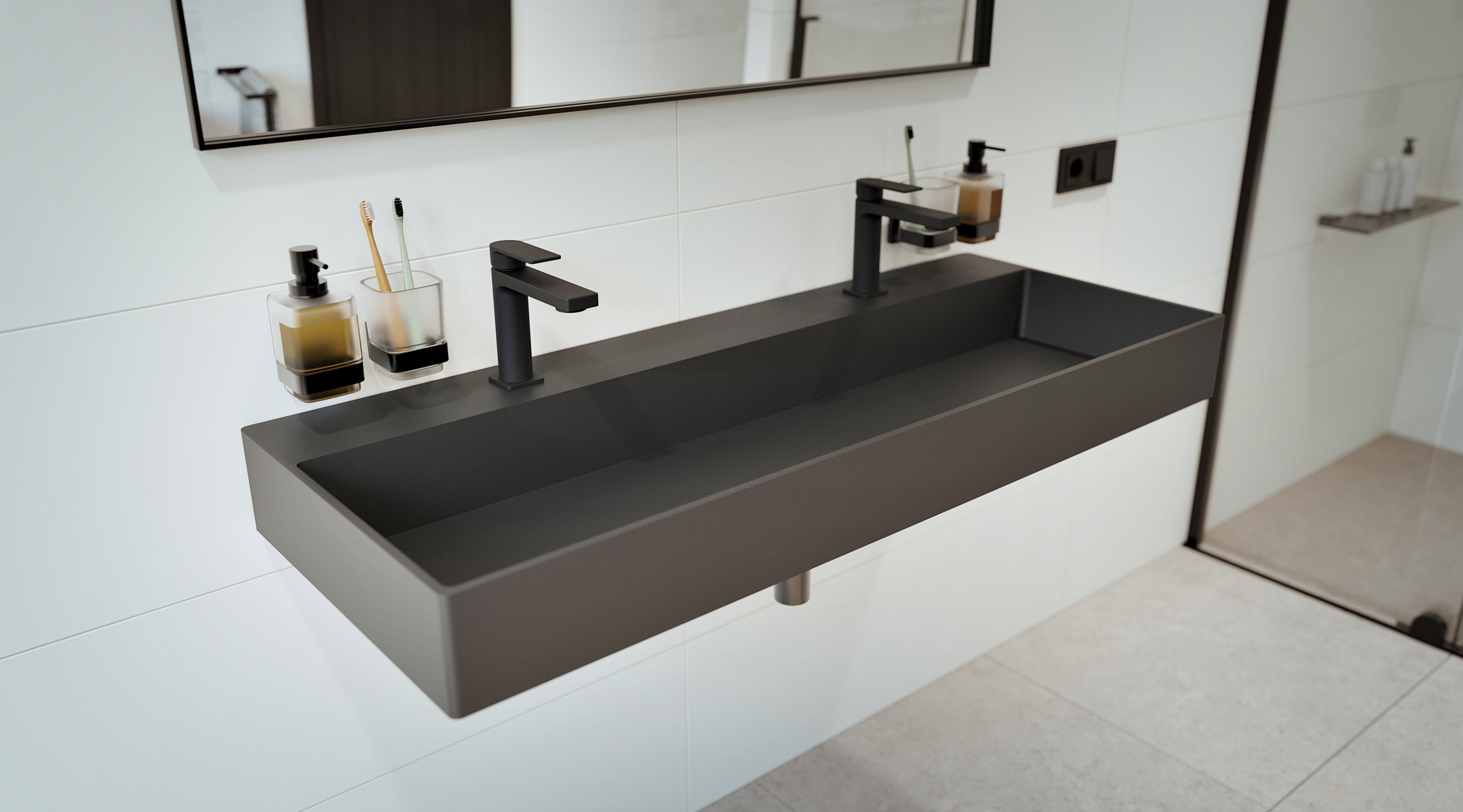 Swiss Aqua Technologies Lavabo SAT Infinitio 121,4x46,9 cm noir mat deux trous pour robinetterie (SATINF12046BKM)