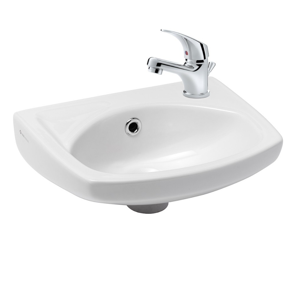 Lave-mains avec trou pour robinetterie sur la droite, trop plein, 35x28 cm, Blanc (EUR913) :