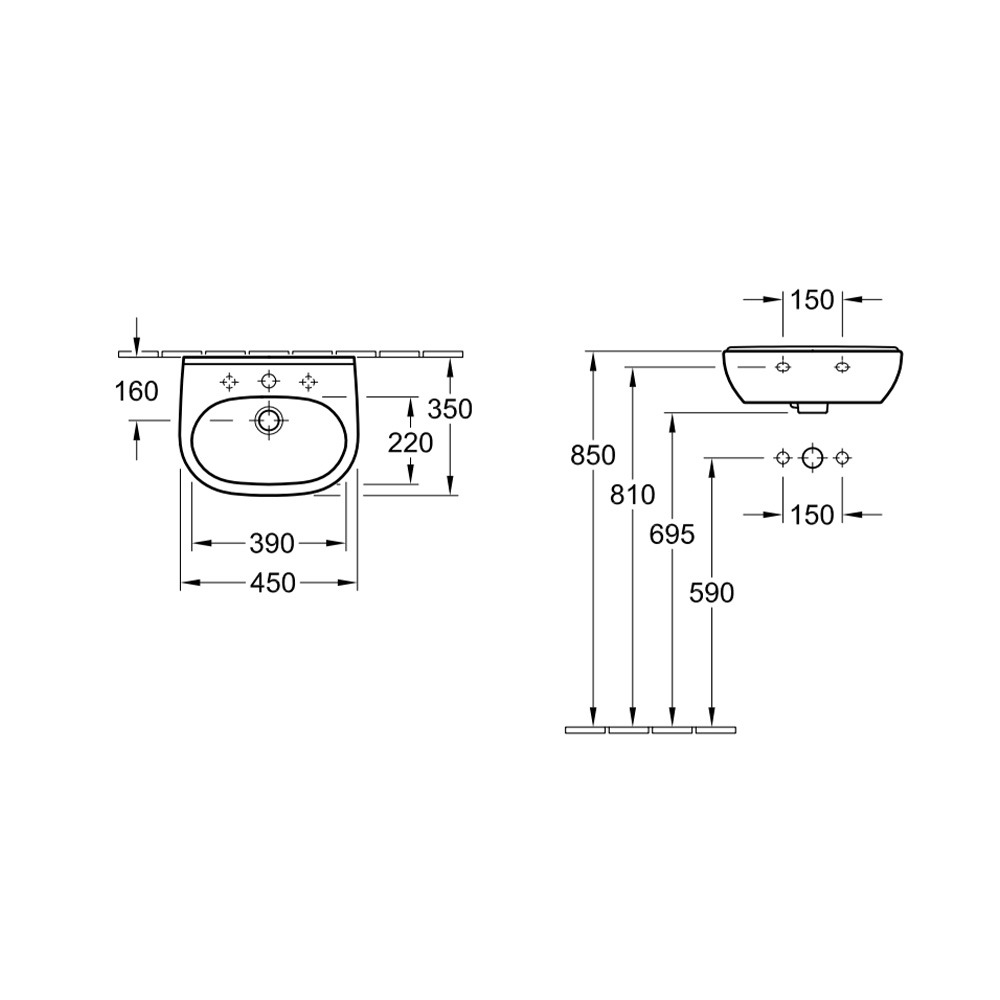 Villeroy & Boch O.Novo Lave-mains 45x35 cm, trou pour robinet au centre, blanc (53604501)