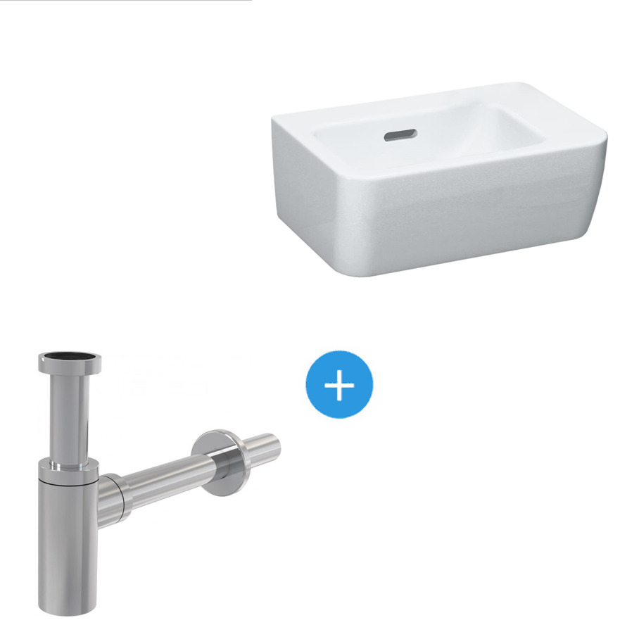 Laufen Ensemble Pro Lave-mains 36x25 cm, Blanc + Siphon Alca en métal Chromé (H8169550001061-SET)
