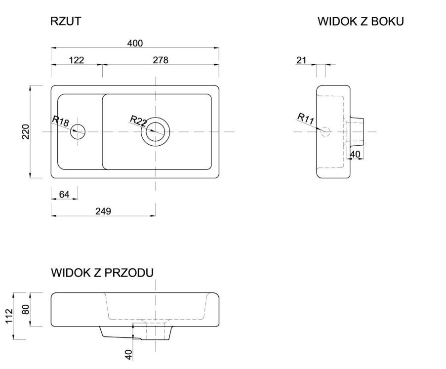Optez pour l'élégance intemporelle avec le lavabo blanc de la série Stilla, avec des dimensions de 40x22x8 cm.
