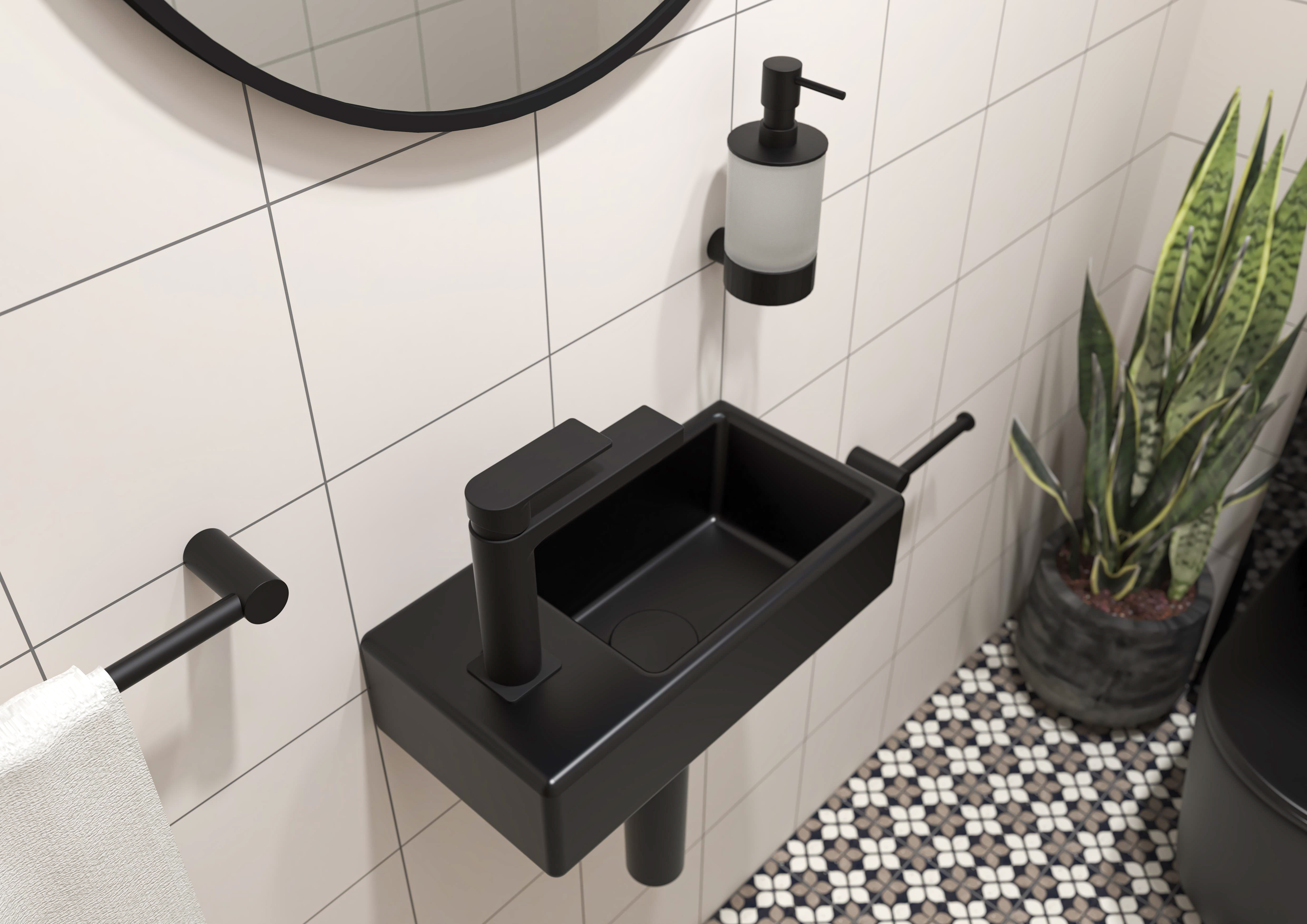 Swiss Aqua Technologies Brevis Lave-mains suspendu avec trou pour robinetterie à gauche, 40,5x20,5x10,5cm, noir (SATBRE4020SLBKM)
