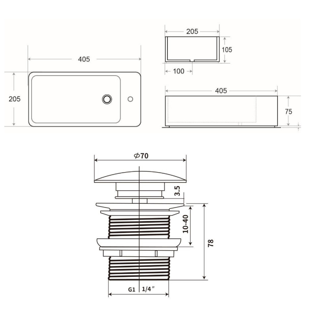 Caractéristiques du Set Brevis Lave-mains suspendu Noir mat avec trou pour robinetterie à gauche, 40,5x20,5x10,5cm + Bonde (SATBRE4020SLBKM-SET2) :