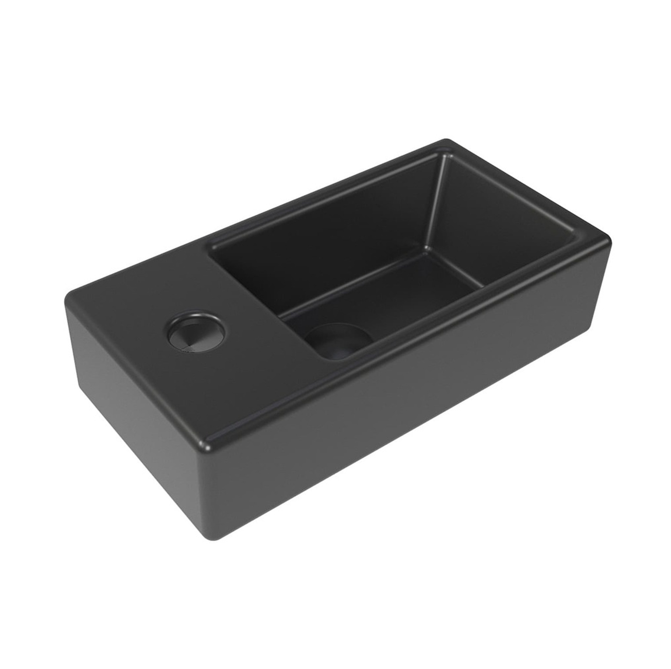 Swiss Aqua Technologies Brevis Lave-mains suspendu avec trou pour robinetterie à gauche, 40,5x20,5x10,5cm, noir (SATBRE4020SLBKM) :