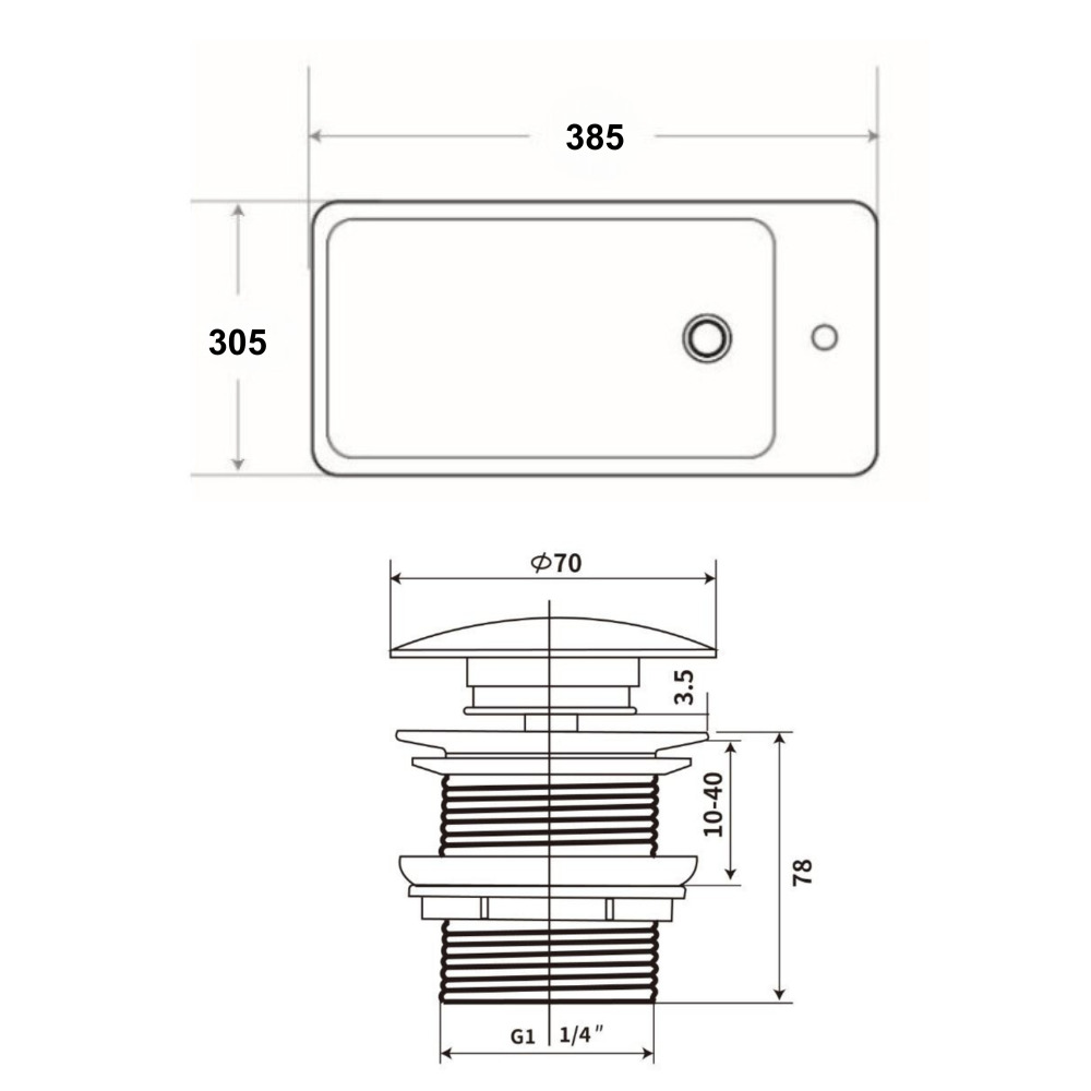 Caractéristiques du Set Brevis Lave-mains suspendu avec trou pour robinetterie au milieu, 38,5x30,5x10,5cm + Bonde, Noir mat (SATBRE3830SBKM-SET3) :