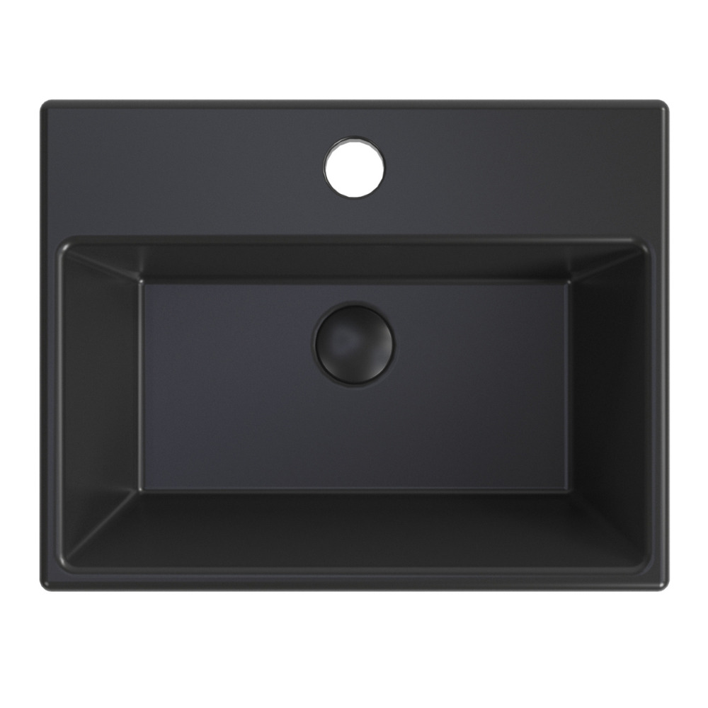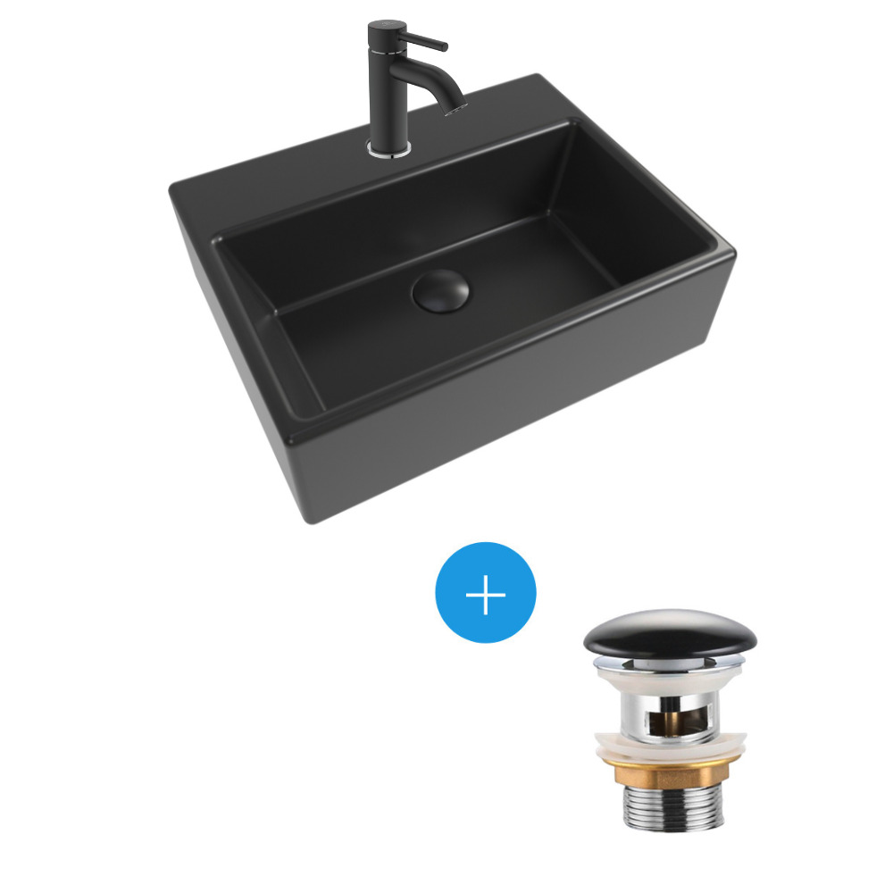 Caractéristiques du Set Brevis Lave-mains suspendu avec trou pour robinetterie au milieu, 38,5x30,5x10,5cm + Bonde, Noir mat (SATBRE3830SBKM-SET4) :