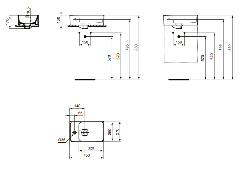 Caractéristiques du lave-mains blanc 450x270 mm Ideal Standard Strada II :