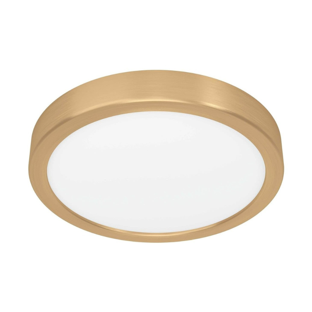 Le plafonnier LED Eglo série Fueva, en saillie avec une jolie bordure de couleur or, pour une lumière de qualité et pleine de style.
