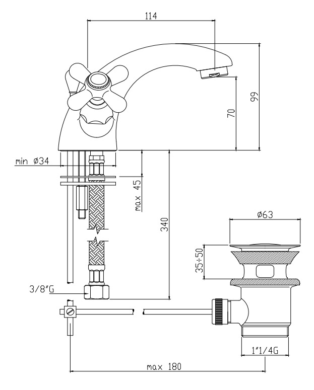 - Tirette et bonde inclus