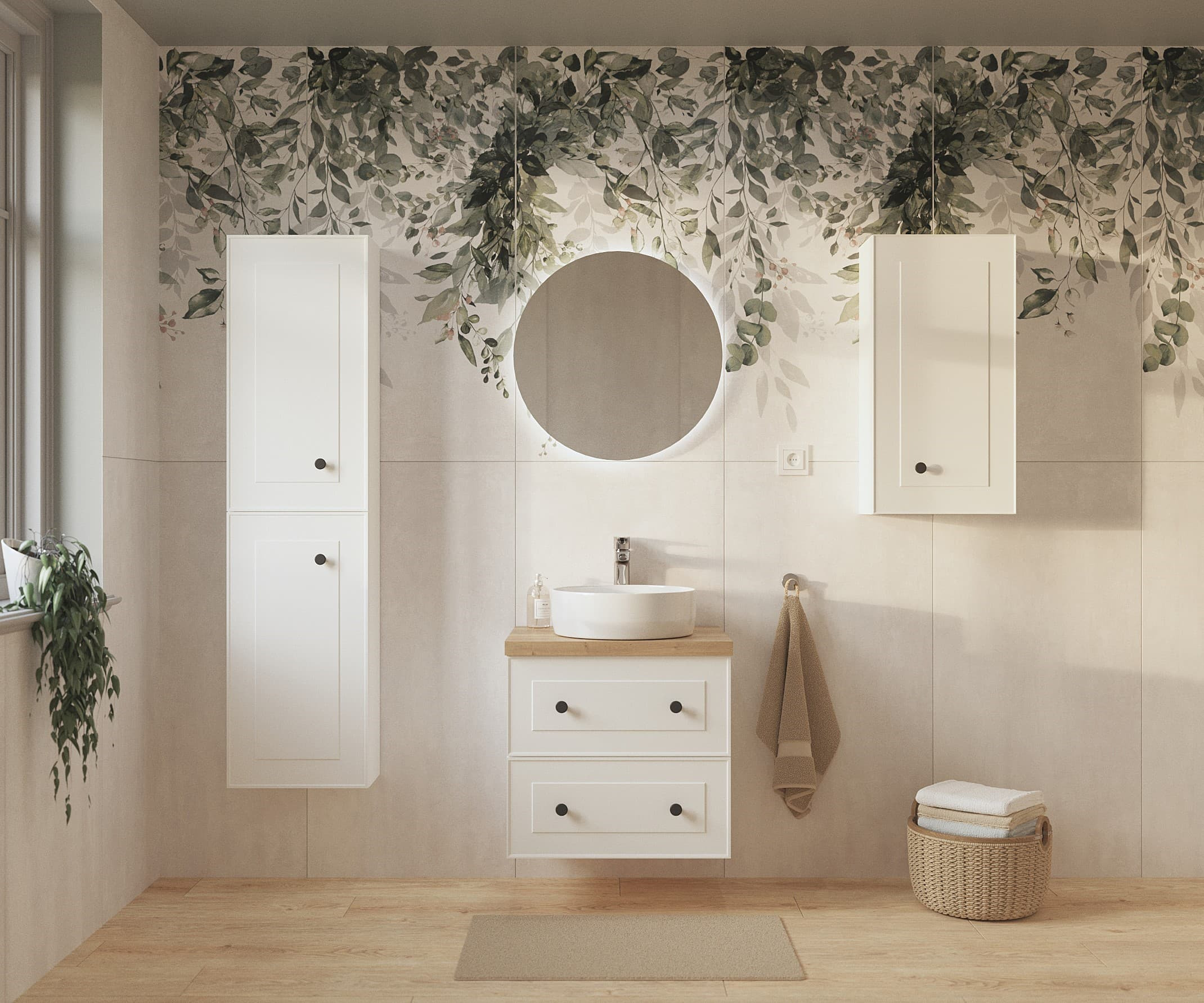 Transformez votre salle de bain en un espace fonctionnel et stylé avec ce meuble suspendu haut en blanc, combinant praticité et esthétique moderne.