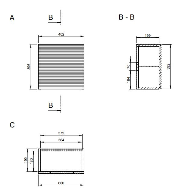 Meuble de salle de bain suspendu bas en blanc brillant. Avec une surface brillante mesurant 40,2x39,6x21,7 cm. Surface stratifiée.