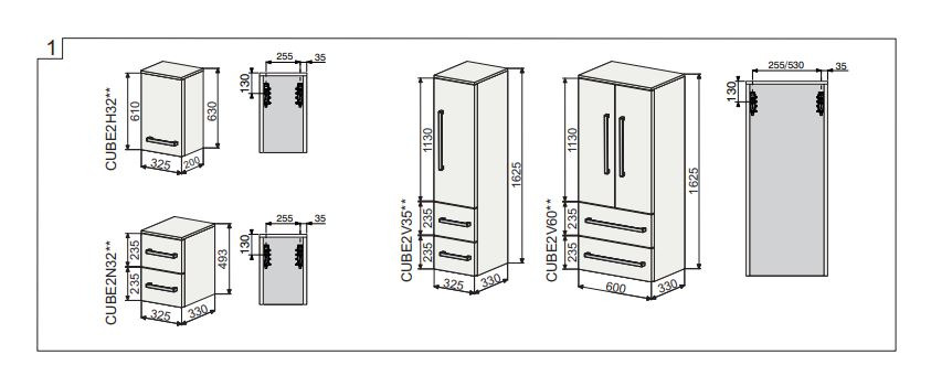 Naturel Meuble de salle de bain haut Naturel Cube Way 60x163x33 cm béton (CUBE2V60BE)