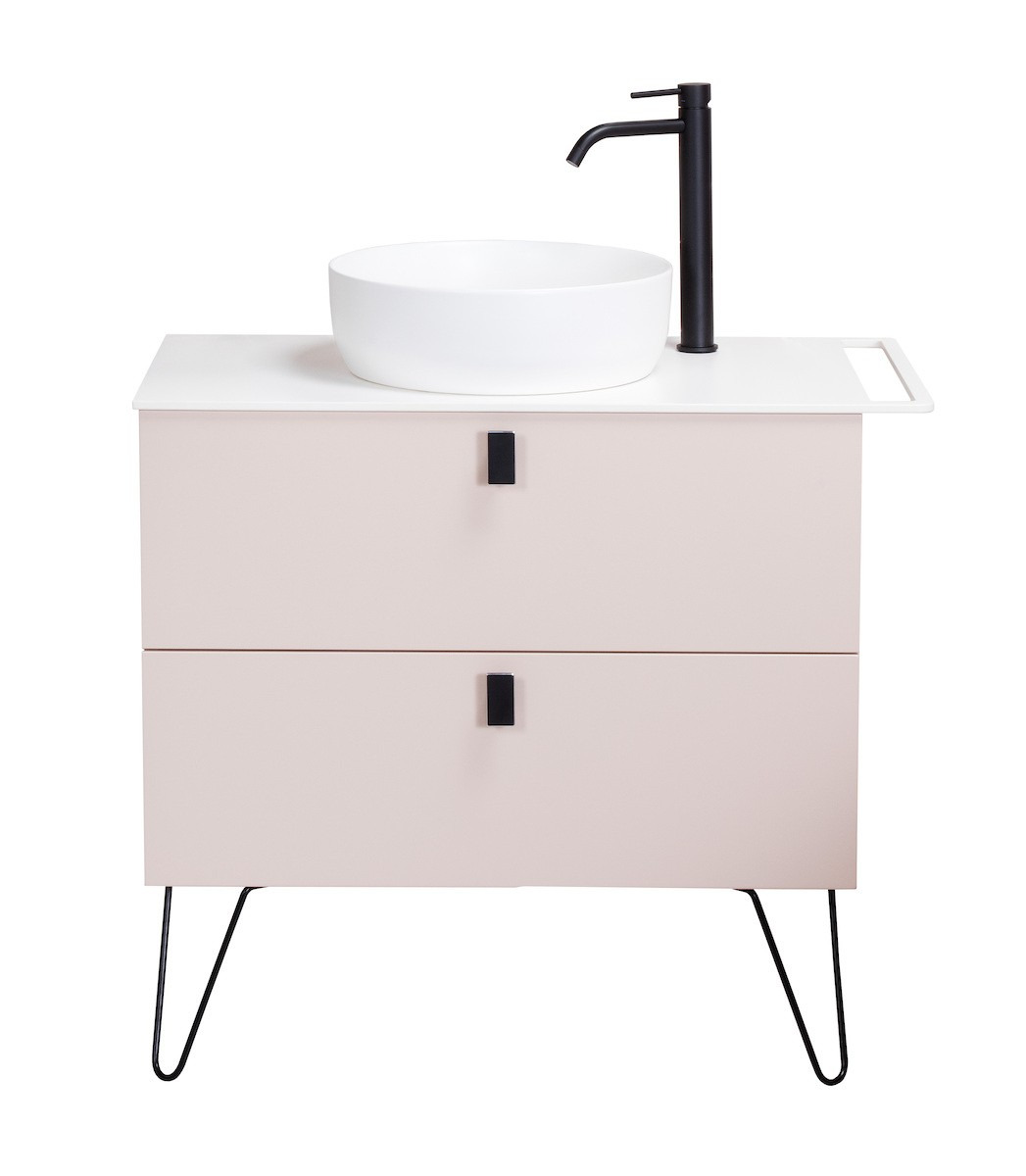 Naturel Meuble de salle de bain sous vasque avec porte serviette Naturel Art Déco 88x55x45 cm Rose beige (ARTDECO80RBBU)