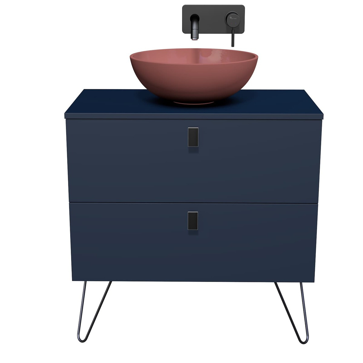 Naturel Meuble de salle de bain sous vasque Naturel Art Déco 60x78,8x45,5 cm bleu marine mat (ARTDECO60TMBU)