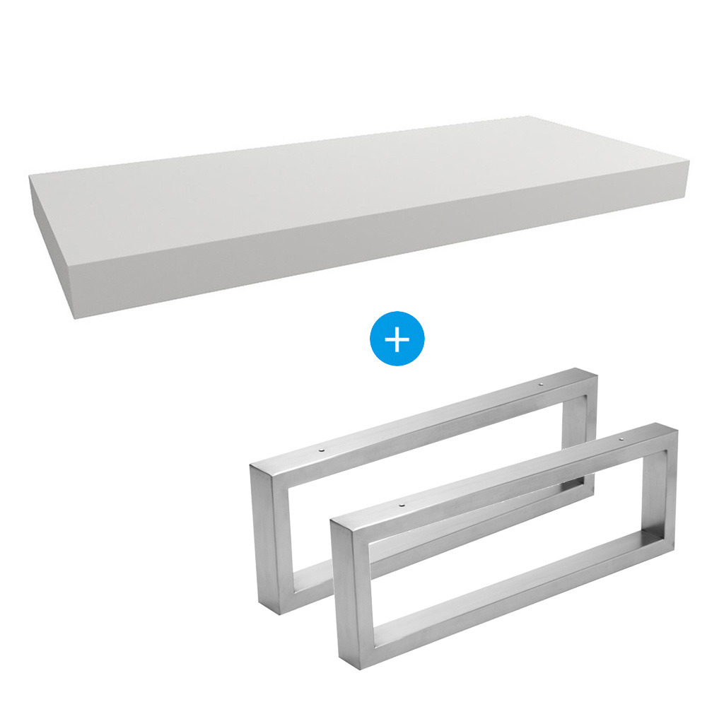Egger Set Naturel plan vasque 120x8x50 cm + 2 fixations porte serviette 45 cm, blanc mat (DO12050BM-FIX3)