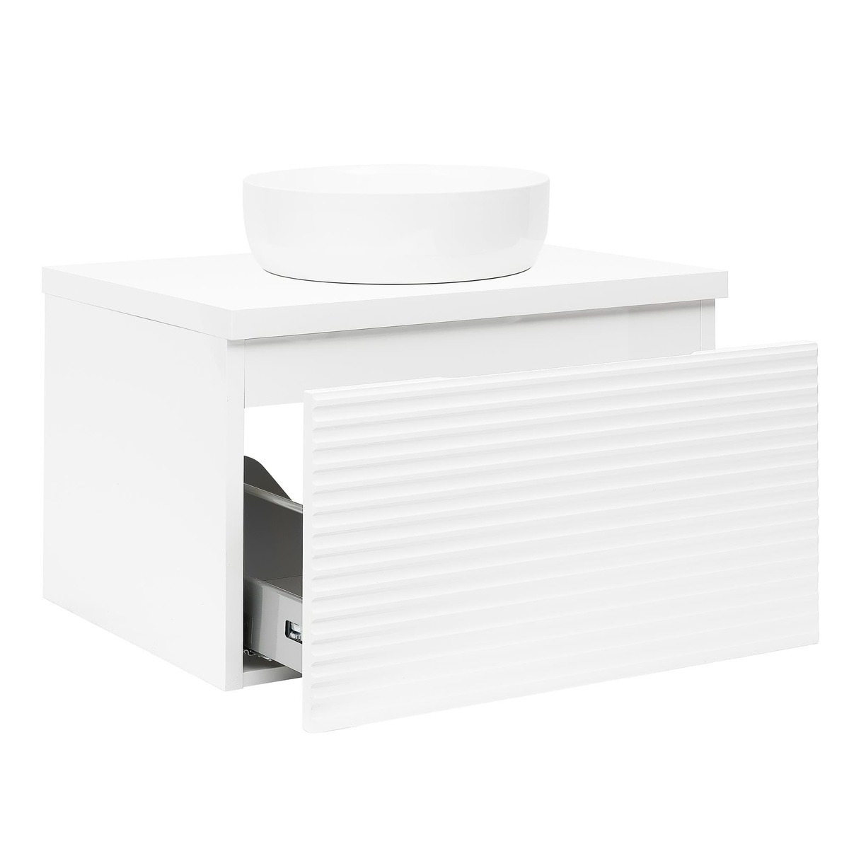 Naturel SAVONA Meuble de salle de bain suspendu 98x43x44,8 cm, Blanc Brillant (SAVONA100BID)