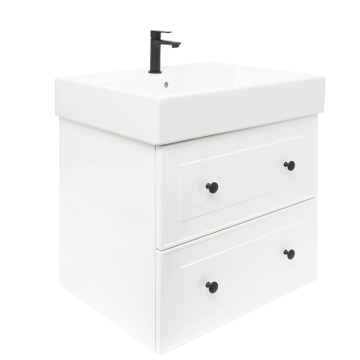 Meuble de salle de bain suspendu avec lavabo en céramique, meuble de couleur blanche avec surface brillante, mesurant 60x45x46 cm. Surface stratifiée.