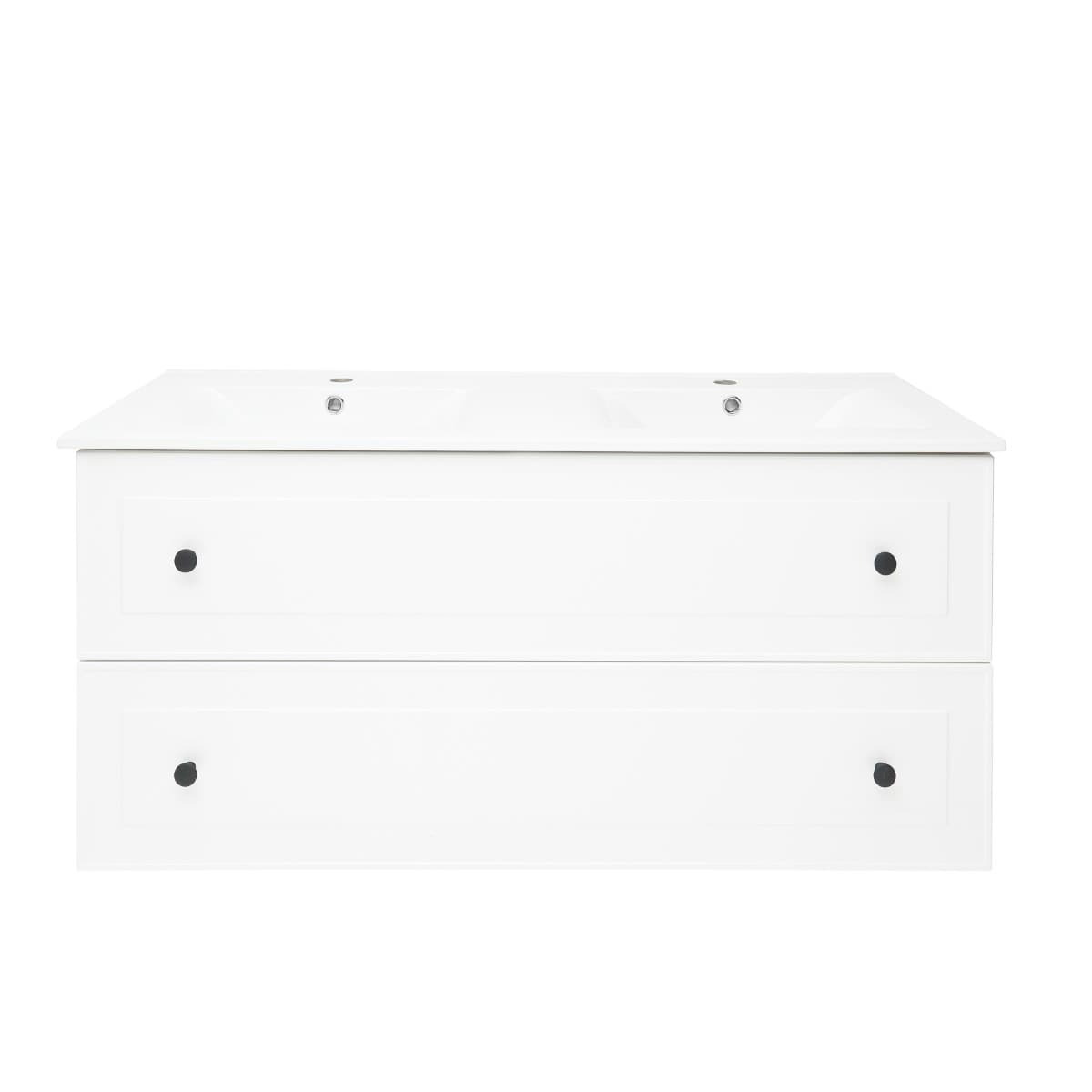 Meuble de salle de bain suspendu avec lavabo en céramique blanc, mesurant 120x45x46 cm.