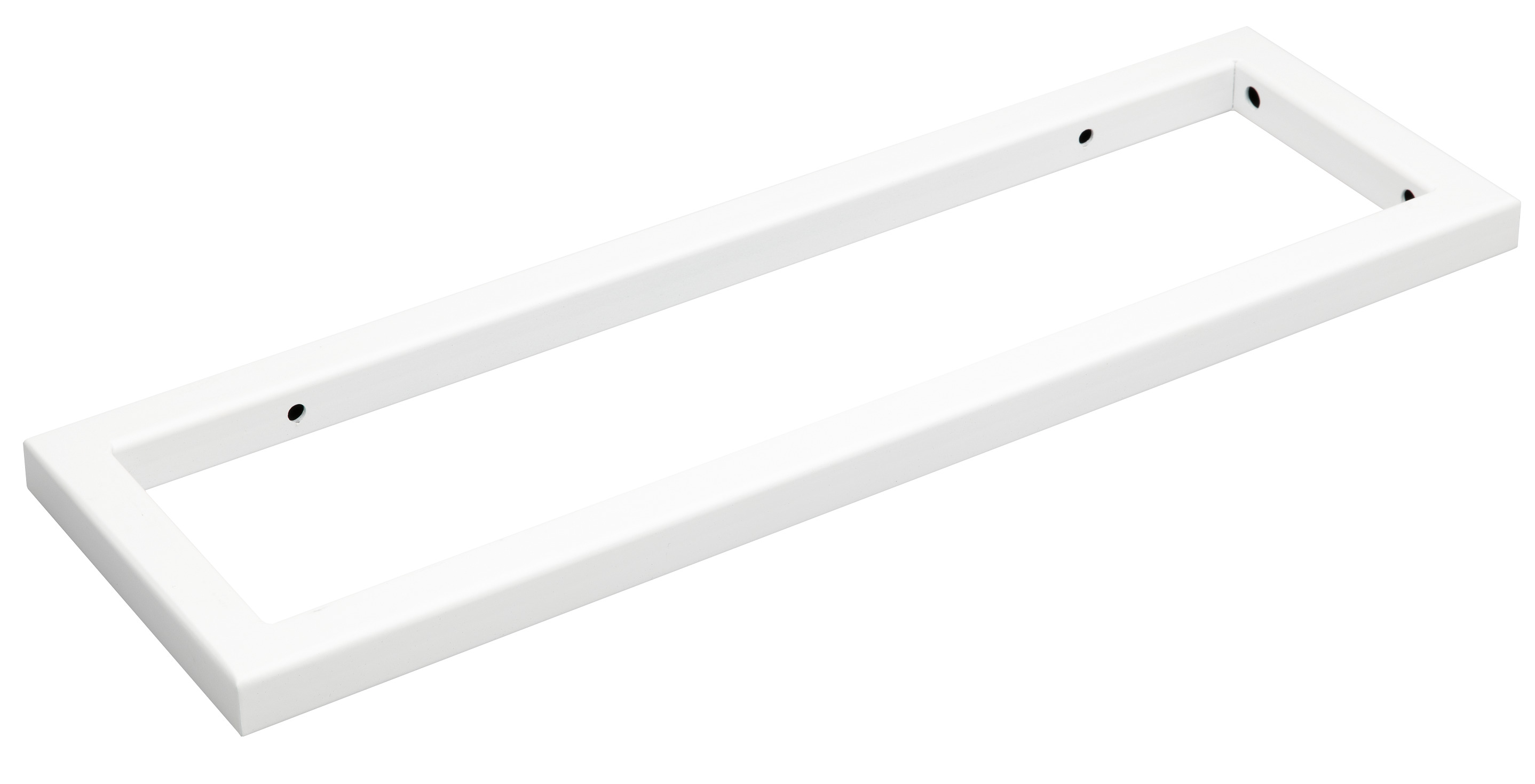 Support laqué de forme carrée d'une longueur de 45 cm en blanc. Lorsqu'il est monté sur le bord de la planche, il peut être utilisé comme porte-serviettes. Le kit de montage n'est pas inclus. Choisissez un kit de montage adapté en fonction des caractéristiques du mur sur lequel vous monterez le support.