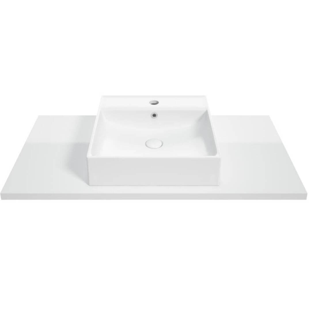 Plan en stratifié blanc. Dimensions 120x2,5x46 cm.