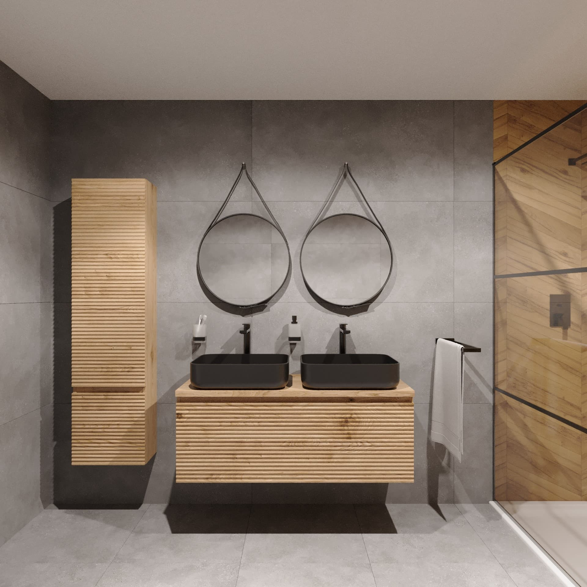 La façade striée du meuble de salle de bain Savona apporte un côté chic et moderne.