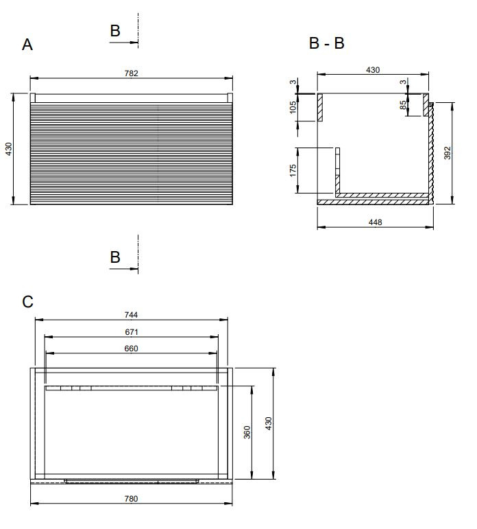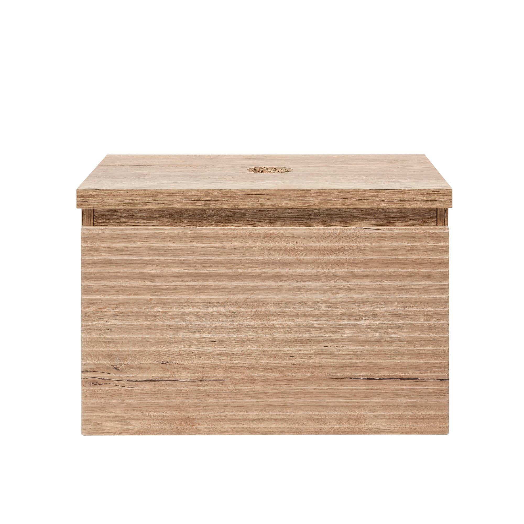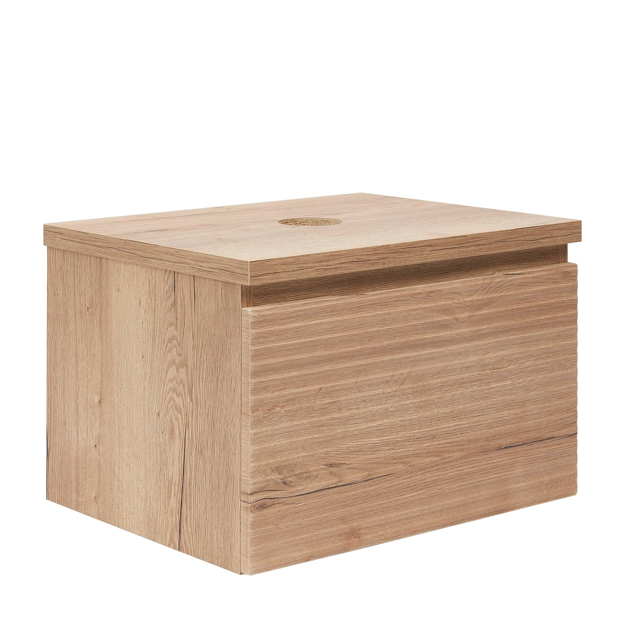 - Meuble de salle de bain suspendu sous lavabo en décor chêne halifax à surface mate, mesurant 78x43x44,8 cm. Surface stratifiée.