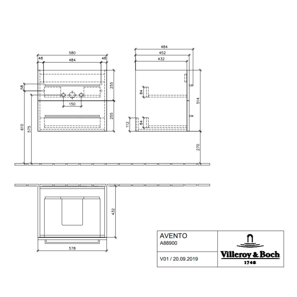 Villeroy & Boch Meuble sous plan Avento, 2 tiroirs sur rails, 576 x 514 x 484 mm, Nordic Oak (A88900VJ)