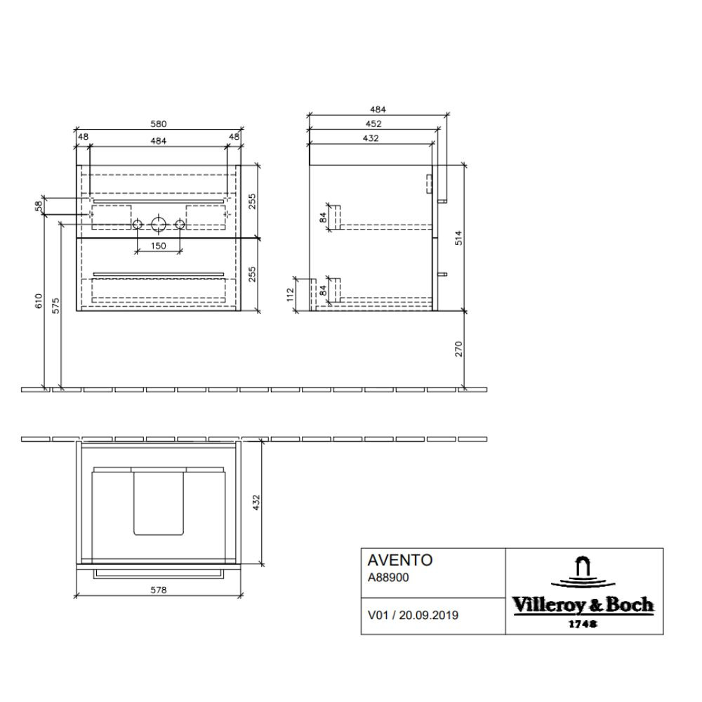 Villeroy & Boch Meuble sous plan Avento , 2 tiroirs sur rails, 576 x 514 x 484 mm, Arizona Oak (A88900VH)