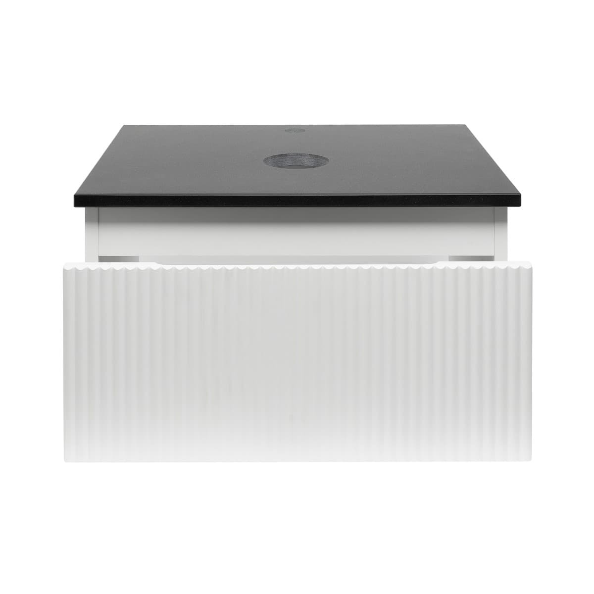 - Plaque de recouvrement en granit de couleur noir Absolut en finition brillante d'une taille de 60x2x46 cm. Dans la plaque, 2 trous sont pré-percés - pour le siphon et le robinet du lavabo.