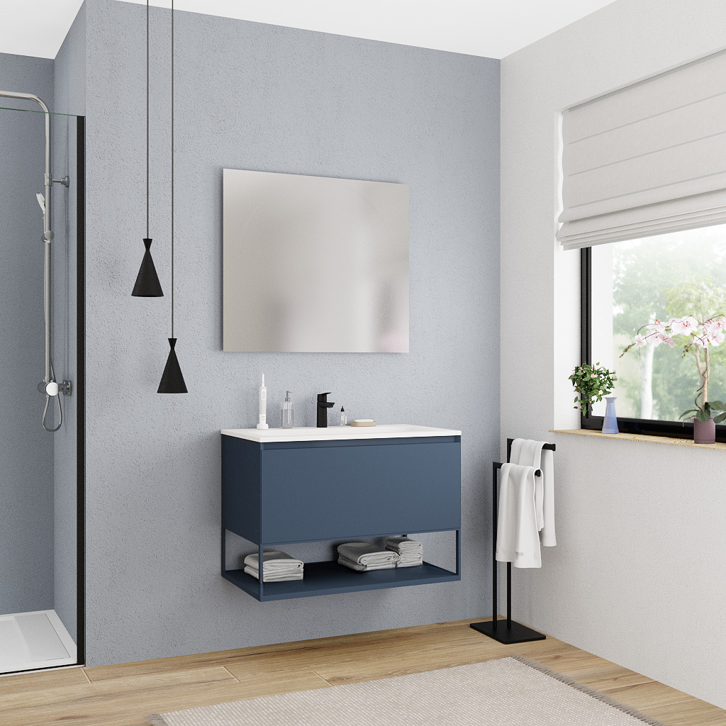 Osez l’élégance du bleu foncé dans votre salle de bain avec le meuble Ceramia 80 cm, une pièce de mobilier au charme intemporel pensée pour les amateurs de style affirmé.