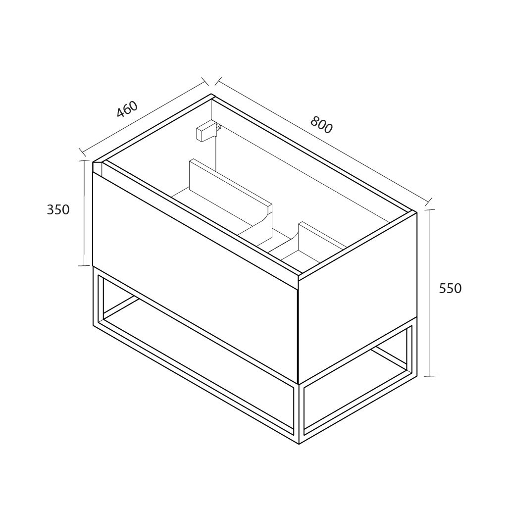 Dimensions : Largeur 800 mm x Profondeur 460 mm x Hauteur 550 mm