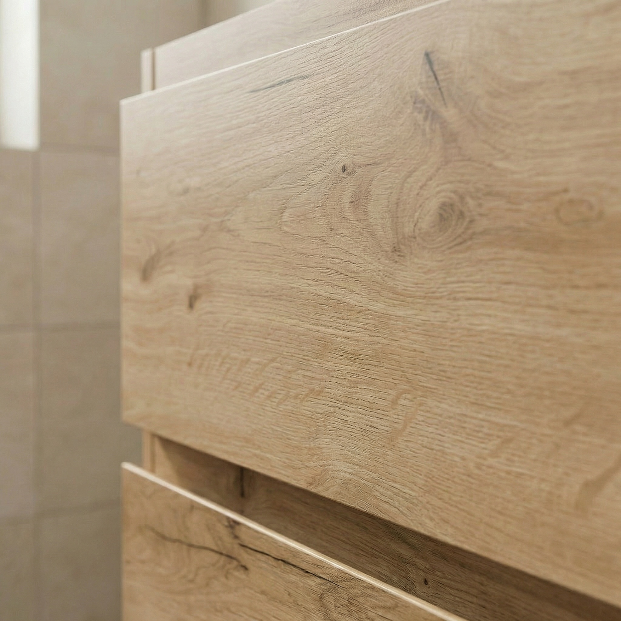 Avec sa finition chêne mat et ses lignes épurées, le meuble sous vasque suspendu B-Way apporte une touche naturelle et contemporaine à la salle de bain. Son format généreux offre un espace de rangement confortable tout en conservant une silhouette légère.