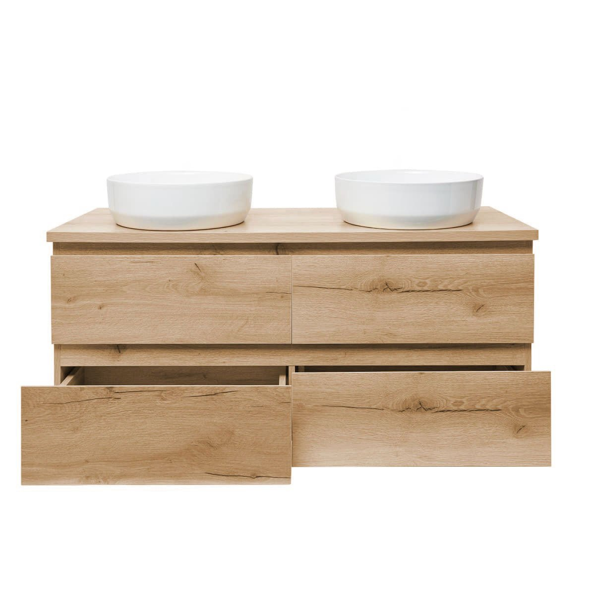 Caractéristiques du meuble de salle de bain suspendu 119x50x45 cm avec plaque de recouvrement, 4 tiroirs indépendants, Swiss Aqua Technologies B-Way, chêne mat (BWAY2120OAKDESK) :