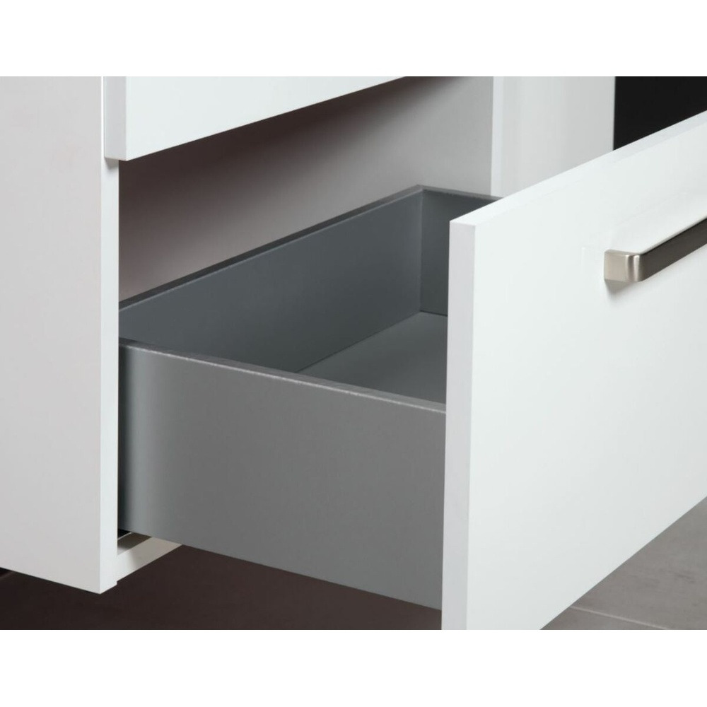 Pensé pour les petites salles de bain ou les espaces optimisés, ce meuble sous lavabo de la série Lyra Plus Viva allie design moderne et fonctionnalité. Sa finition blanche brillante et ses poignées en nickel brossé lui confèrent une allure sobre et contemporaine.