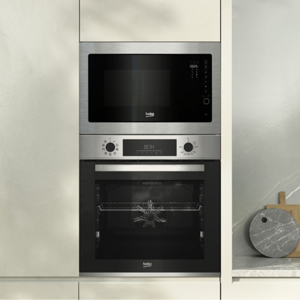 Beko Micro-ondes grill encastrable 25L, 8 programmes cuisson automatiques, écran LCD, sécurité enfant, cavité en inox (BMGB25332BG)