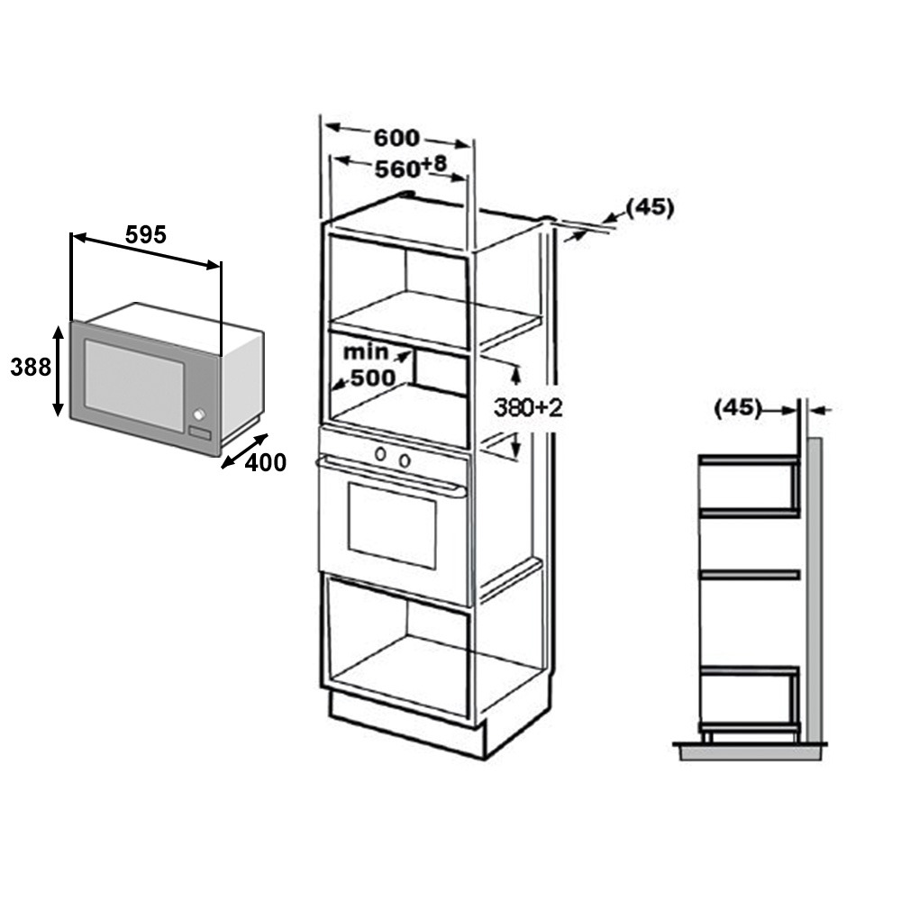 Caractéristiques du Micro-ondes grill encastrable 25L, 8 programmes + écran LCD + minuterie 95mn, Acier inoxydable :