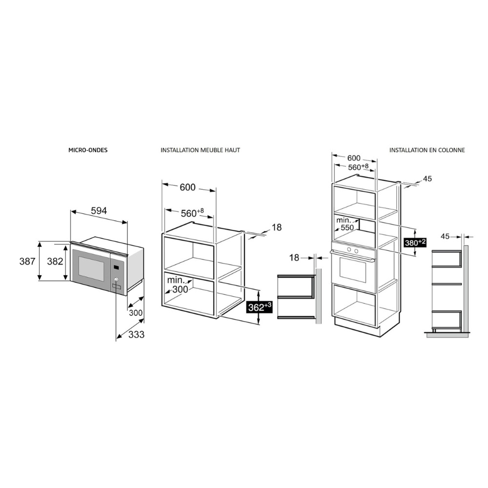 - La profondeur compacte de ce micro-ondes permet une installation facile dans des niches de minimum 30 cm de profondeur et également de le positionner dans un meuble en hauteur.