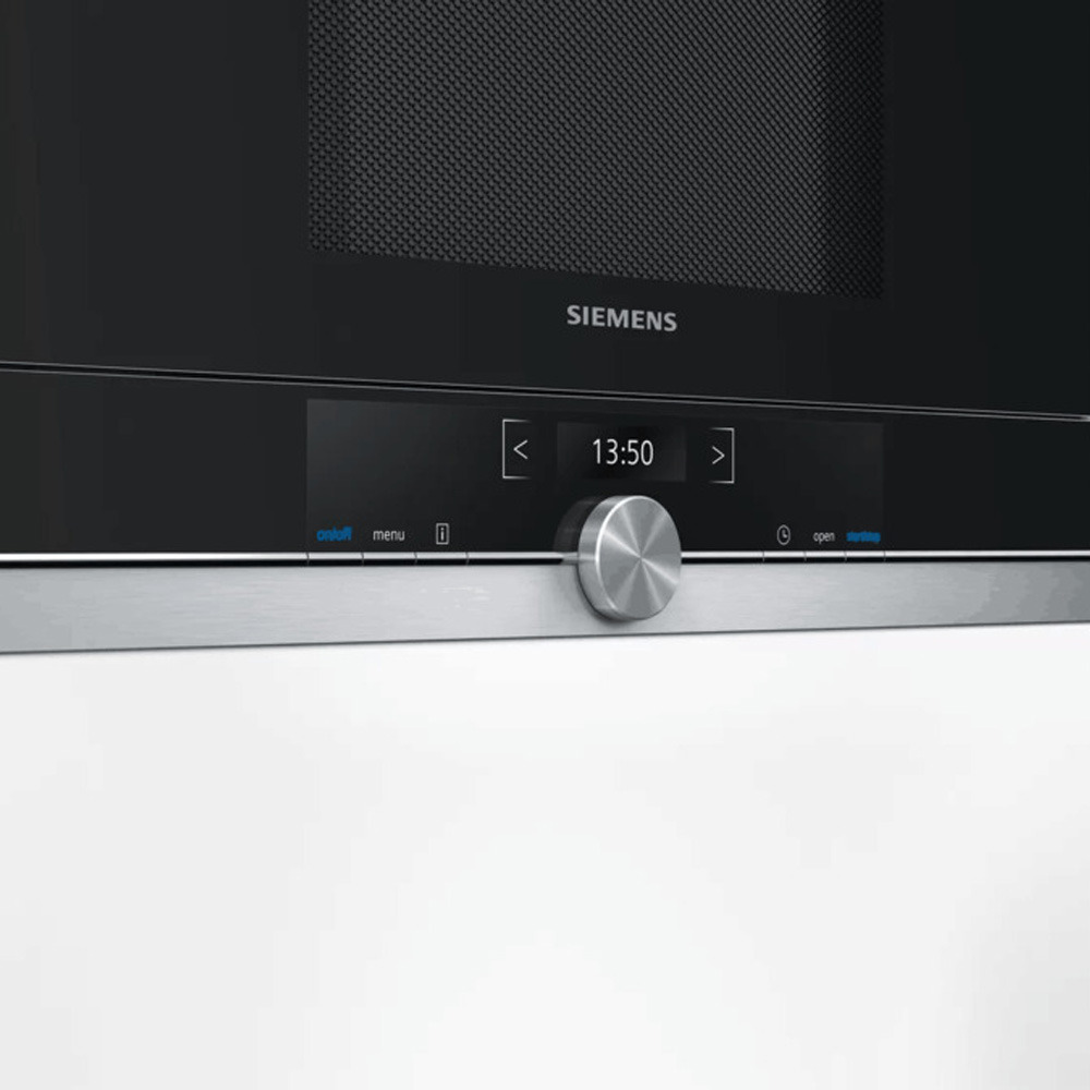 Siemens iQ700 Four à micro-ondes encastrable compact 21L, 7 programmes, Écran TFT, acier inoxydable, noir (BF634LGS1)