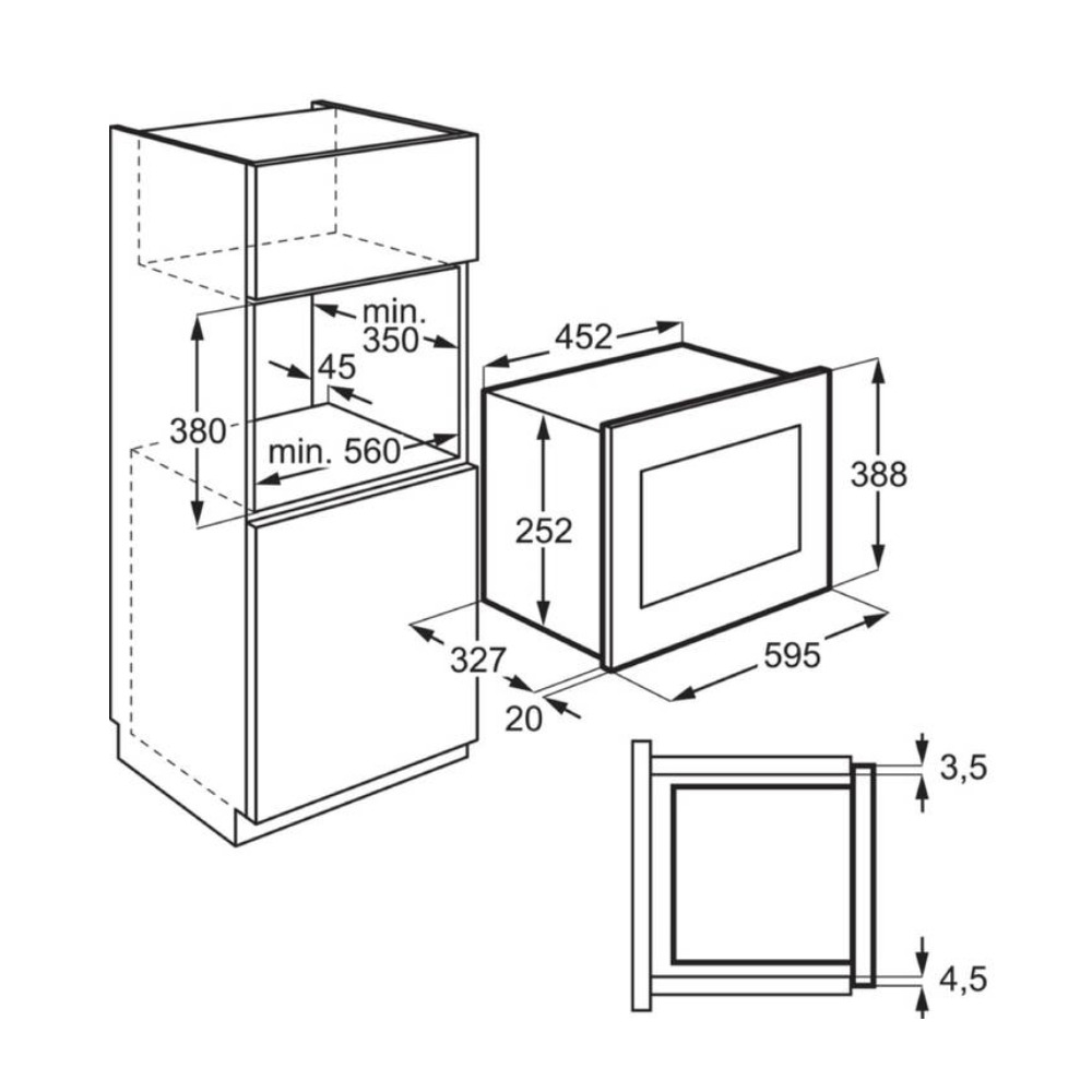 - Espace d'encastrement (mm) : 380x560x350