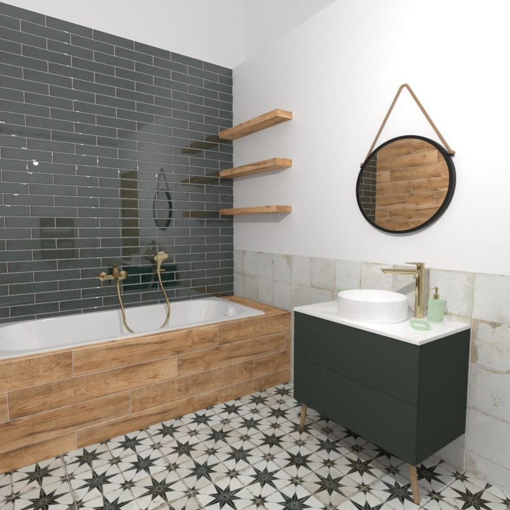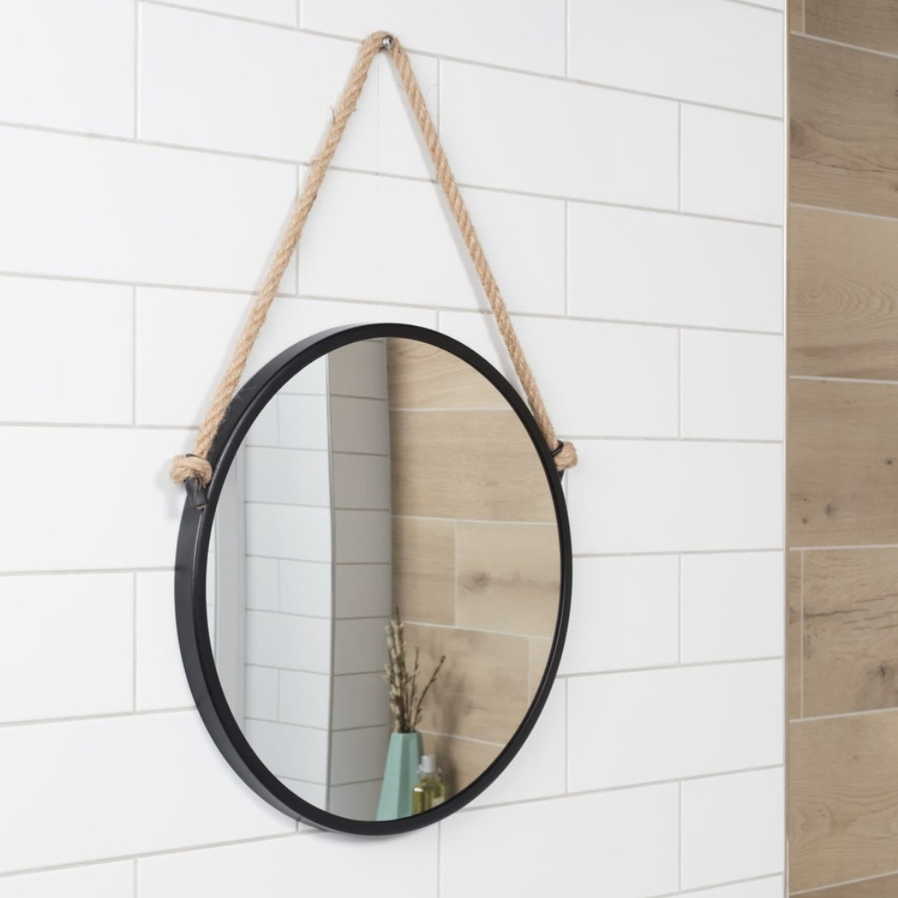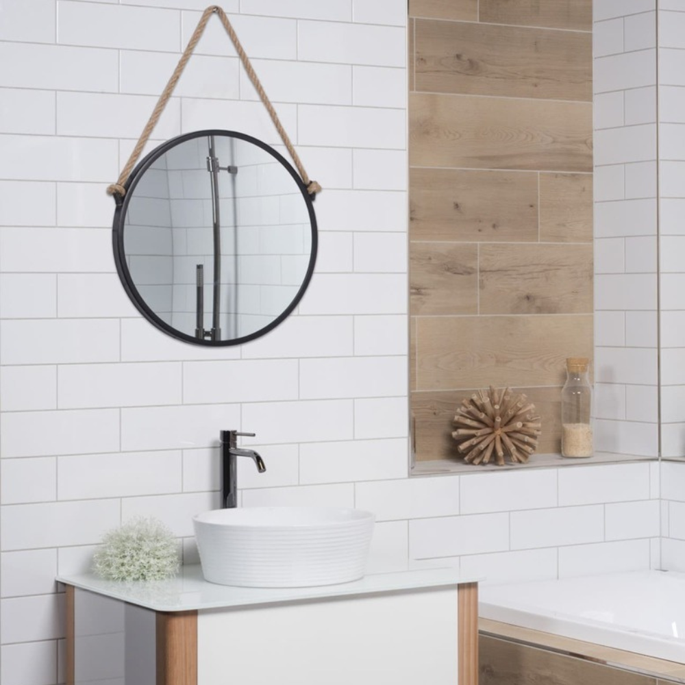Naturel 60x60 cm miroir suspendu rond en métal, inspiration scandinave, noir mat (ZLAN60C)