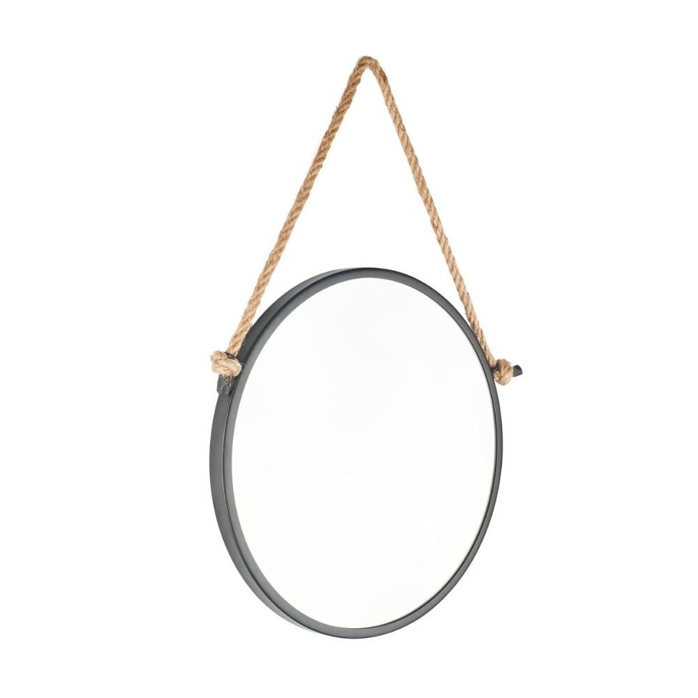 Caractéristiques du miroir suspendu rond en métal 60x60 cm, inspiration scandinave, Naturel, noir mat (ZLAN60C) :