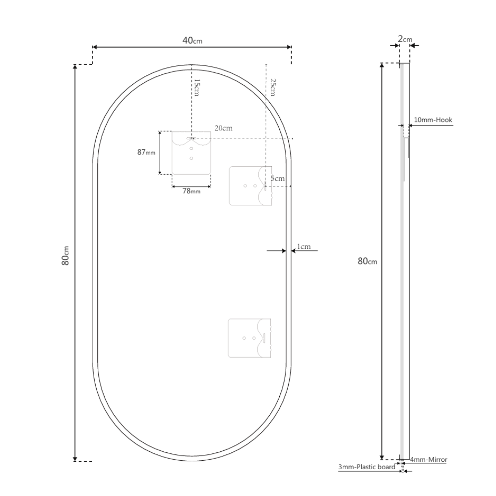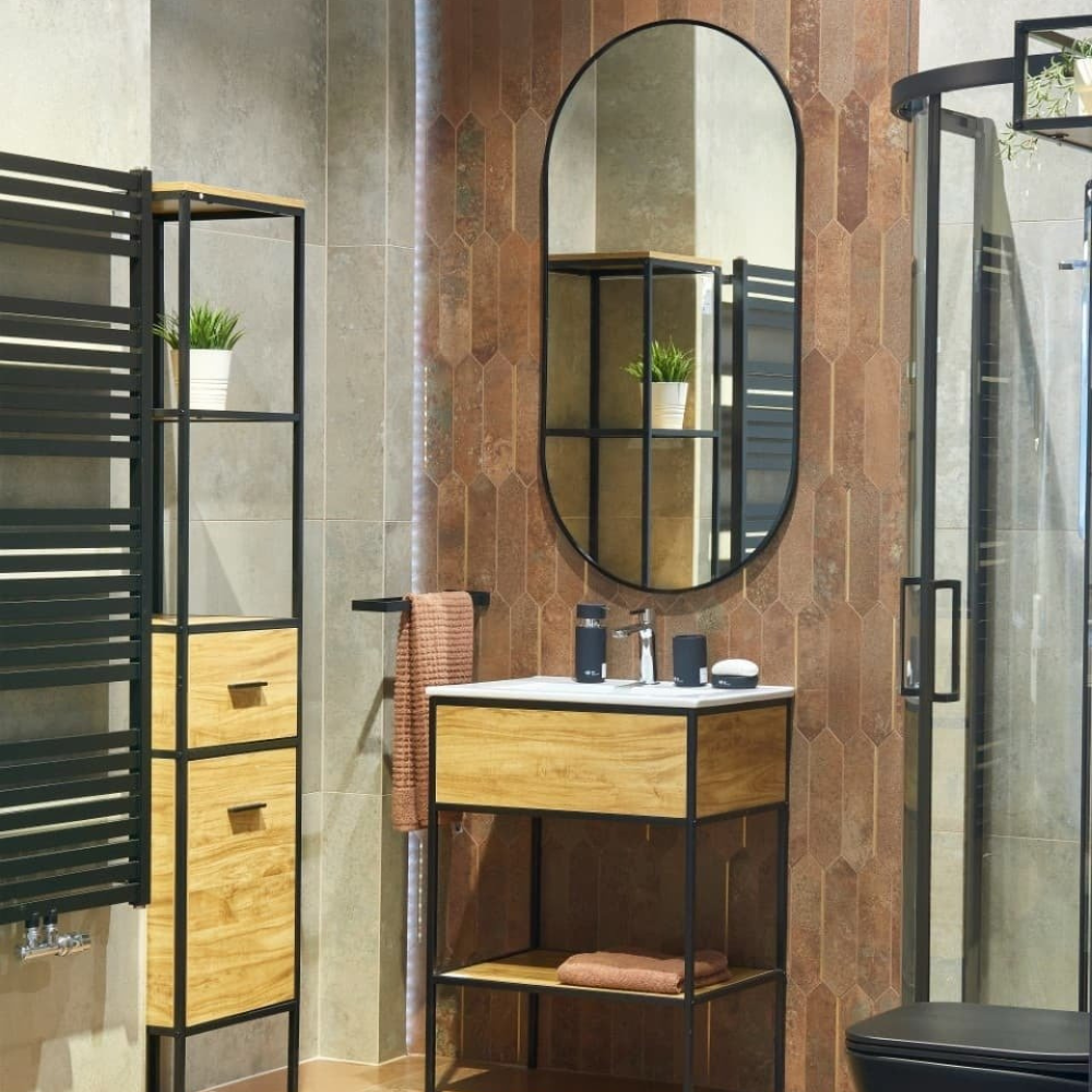 Caractéristiques du miroir suspendu ovale sans tain 40x80 cm, cadre en aluminium, Naturel B-Way, noir (ZBWOV8040C) :