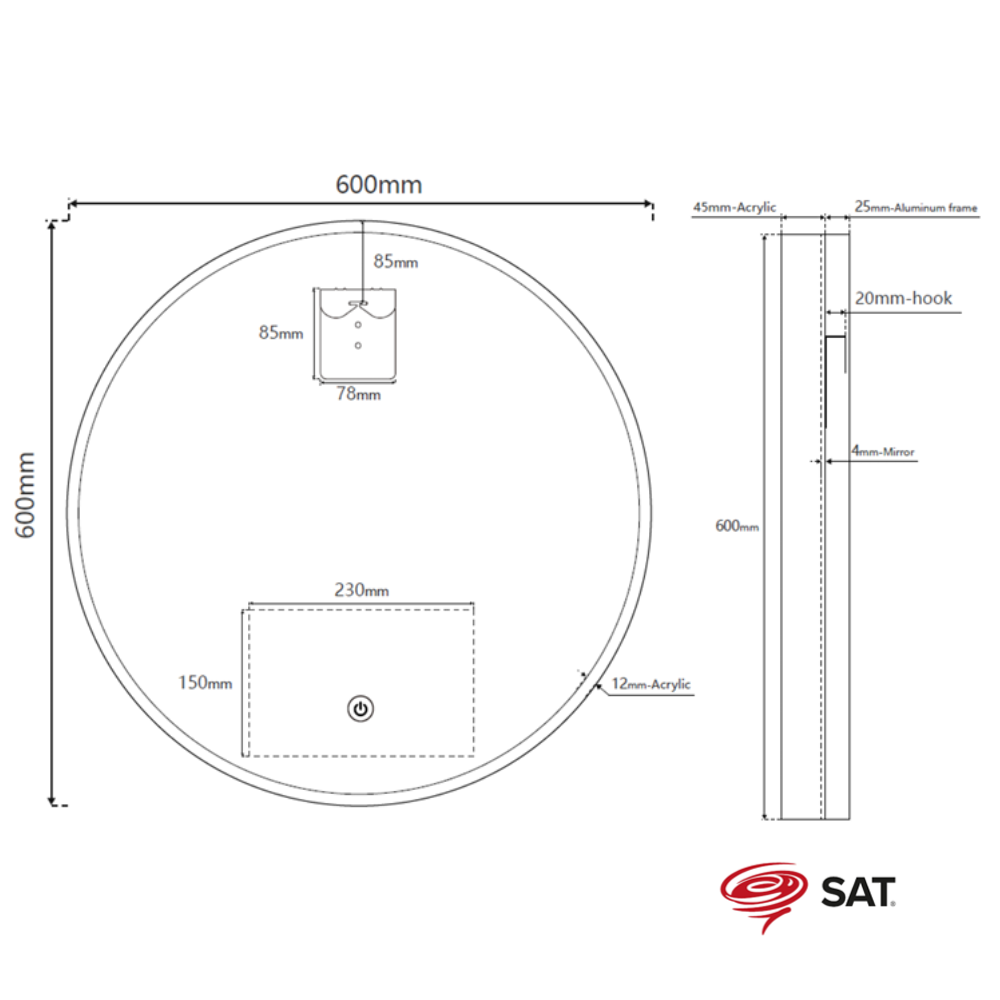 - Cadre transparent lumineux : un design moderne qui s’intègre parfaitement dans toutes les salles de bains contemporaines.