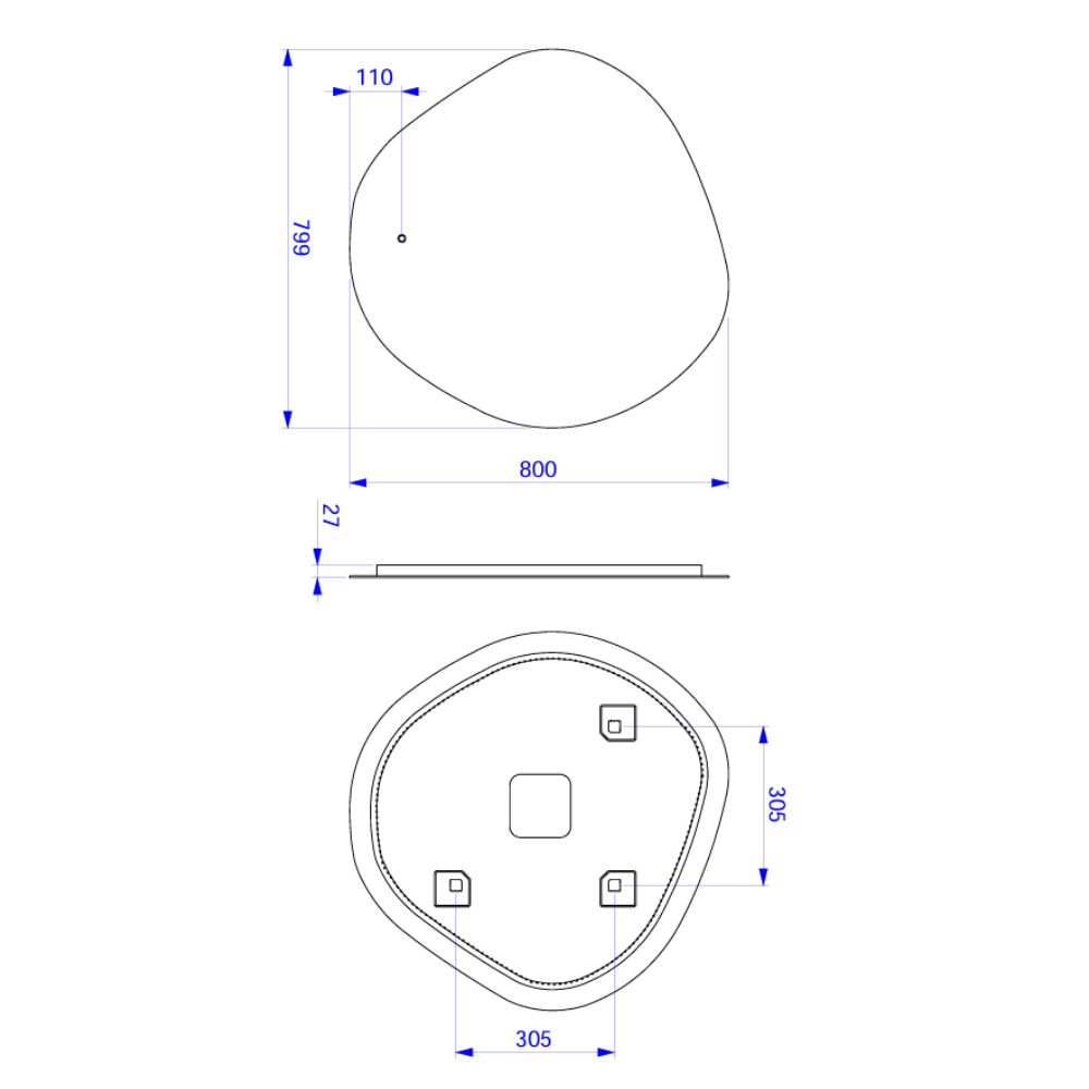 Caractéristiques du miroir suspendu asymétrique 80x80 cm avec éclairage LED et capteur, Swiss Aqua Technologies, blanc neutre (SATZASLED80) :